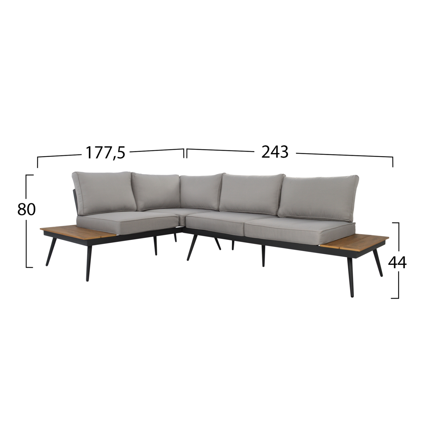 Διαστάσεις καναπέ γωνίας: 177,5x243x80Y εκ.