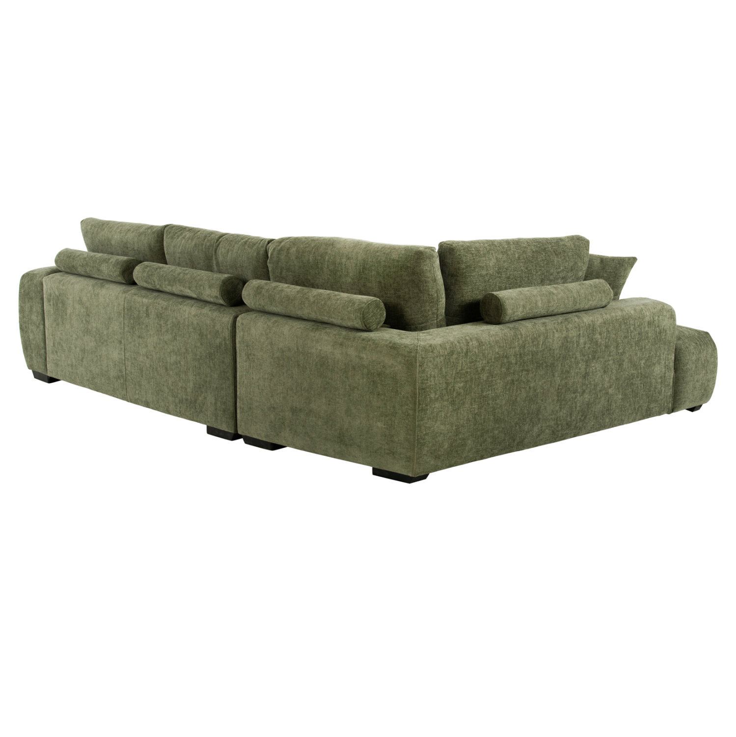 Σας παρουσιάζουμε τον COVEN, έναν υπέροχο μεγάλο καναπέ σε διαμόρφωση ΑΡΙΣΤΕΡΗΣ γωνίας (όπως τον κοιτάς) επενδυμένο με ποιοτικό ύφασμα σε ΠΡΑΣΙΝΟ χρώμα. Ξεκινώντας από το design, ο καναπές φτάνει μέχρι πολύ χαμηλά σε στυλ «ποδιάς» και διαθέτει φαρδιά χαμηλά πόδια-βάσεις σε μαύρο χρώμα. Τα μπράτσα είναι εντυπωσιακά φαρδιά, ενώ η επένδυση είναι σε στυλ καπιτονέ με τις έντονες ραφές! Το κομμάτι που σχηματίζει την γωνία είναι ίδιας αισθητικής και ενώνεται με τον κυρίως καναπέ με κατακόρυφους αναρτήρες πάνελ. Η πλάτη είναι χαμηλή και διαθέτει 4 μαξιλάρια πλάτης με «καραμέλες»(μακρόστενα κυλινδρικά μαξιλάρια) στο πίσω μέρος τους για καλύτερη στήριξη, αλλά και 3 μικρότερα διακοσμητικά μαξιλαράκια. Το κάθισμα διαθέτει γεμίσματα αφρού μεσαίας σκληρότητας σε συνδυασμό με ελατήρια pocket springs, προσφέροντας απαράμιλλη άνεση. Και φυσικά, σας προσφέρουμε αυτόν τον καναπέ με εγγύηση σκελετού 3 ετών!
