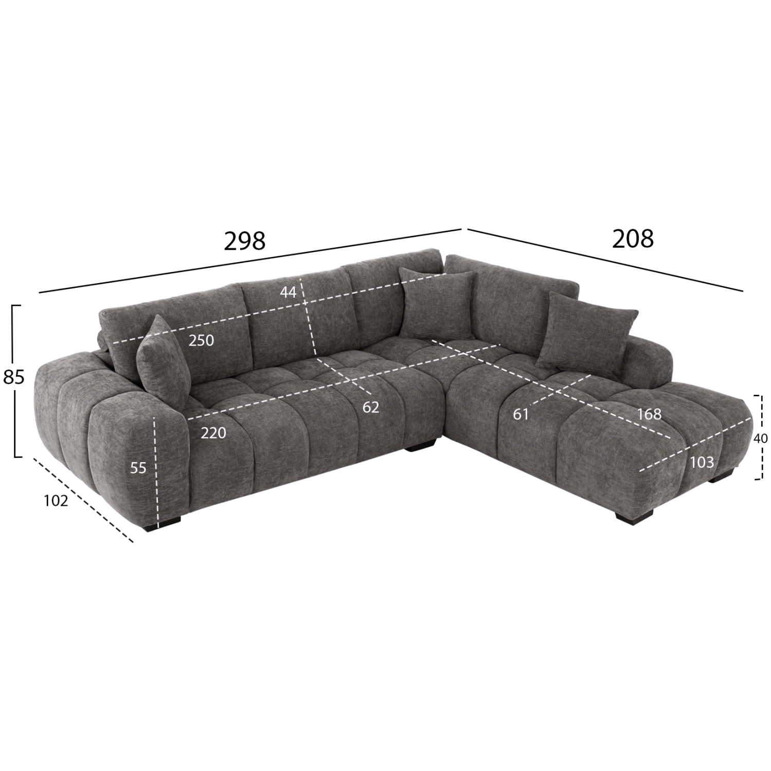 ΚΑΝΑΠΕΣ ΓΩΝΙΑ (ΔΕΞΙΑ) COVEN HM3266.03R ΣΚΟΥΡΟ ΓΚΡΙ ΥΦΑΣΜΑ 298×102-208×85Υεκ.