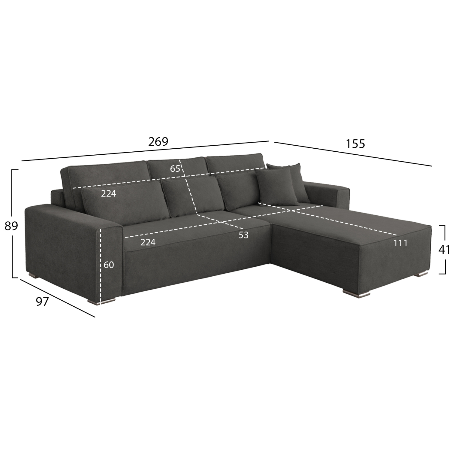ΚΑΝΑΠΕΣ ΚΡΕΒΑΤΙ ΑΝΑΣΤΡΕΨΙΜH ΓΩΝΙΑ CORNERA HM3335.01 ΓΚΡΙ ΥΦΑΣΜΑ 269x155x89Yεκ