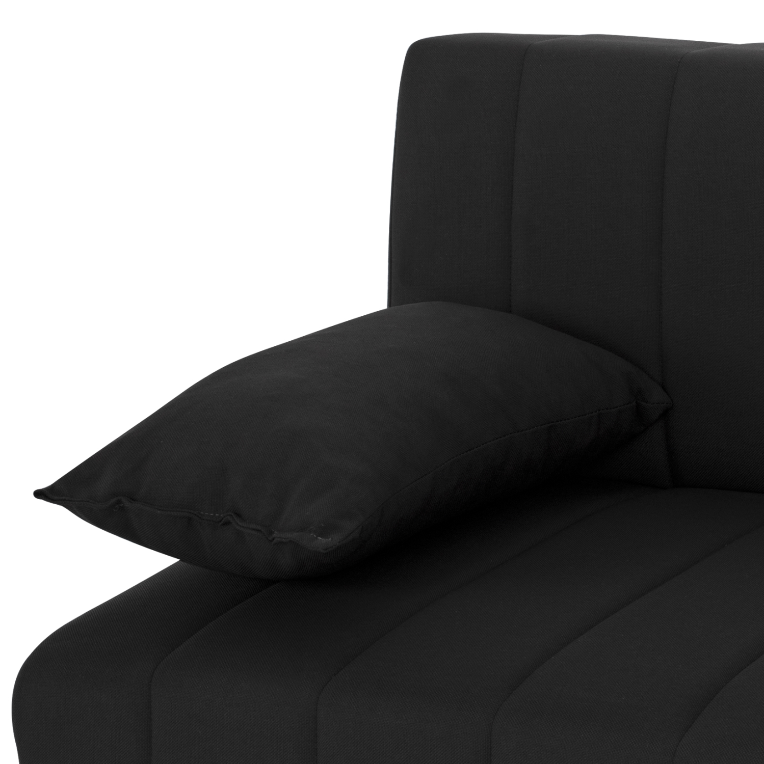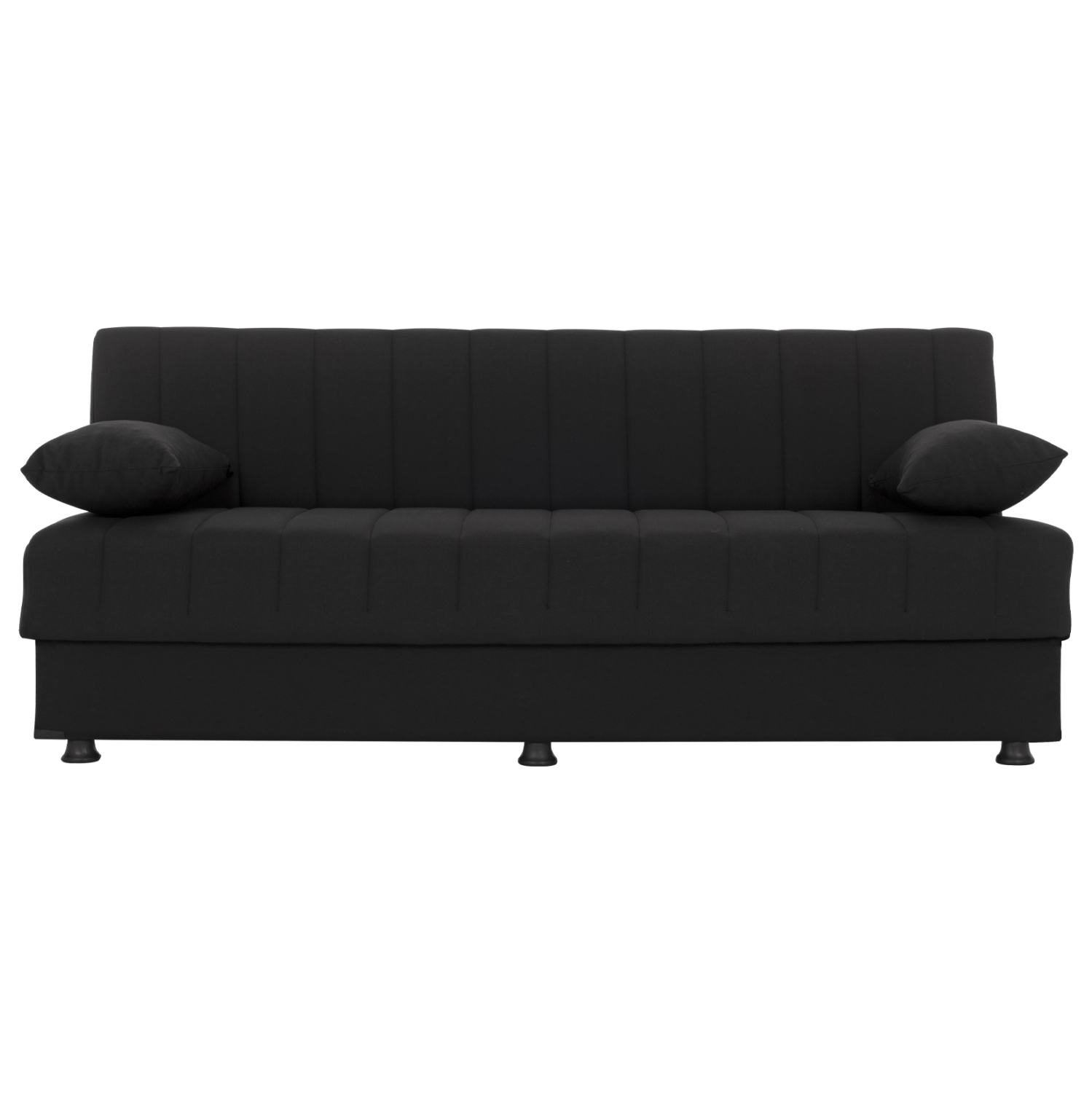 Ξεκινώντας από τα βασικά και τα προφανή, το χρώμα της επένδυσης με το εξαιρετικό και καλοραμμένο ύφασμα αυτού του καναπέ, είναι ΜΑΥΡΟ. Διαθέτει 2 μικρά μακρόστενα μαξιλάρια με το ίδιο ύφασμα που μπορούν να χρησιμοποιηθούν όπως θέλει ο καθένας. Χαρακτηριστικό αυτού του καναπέ είναι ότι δεν διαθέτει μπράτσα με αποτέλεσμα να μην περιορίζει την χρήση του από τους χρήστες του. Επίσης, γίνεται πολύ εύκολα κρεβάτι μέσω ενός εύχρηστου μηχανισμού (κλικ-κλακ) πολλαπλασιάζοντας την χρησιμότητά του. Κάτω από το κάθισμα του καναπέ υπάρχουν 2 αποθηκευτικοί χώροι με ενισχυμένο πάτωμα καθιστώντας τον ένα πραγματικό πολυεργαλείο, ειδικά για φοιτητικά σπίτια αλλά και σπίτια με περιορισμένο γενικά χώρο.