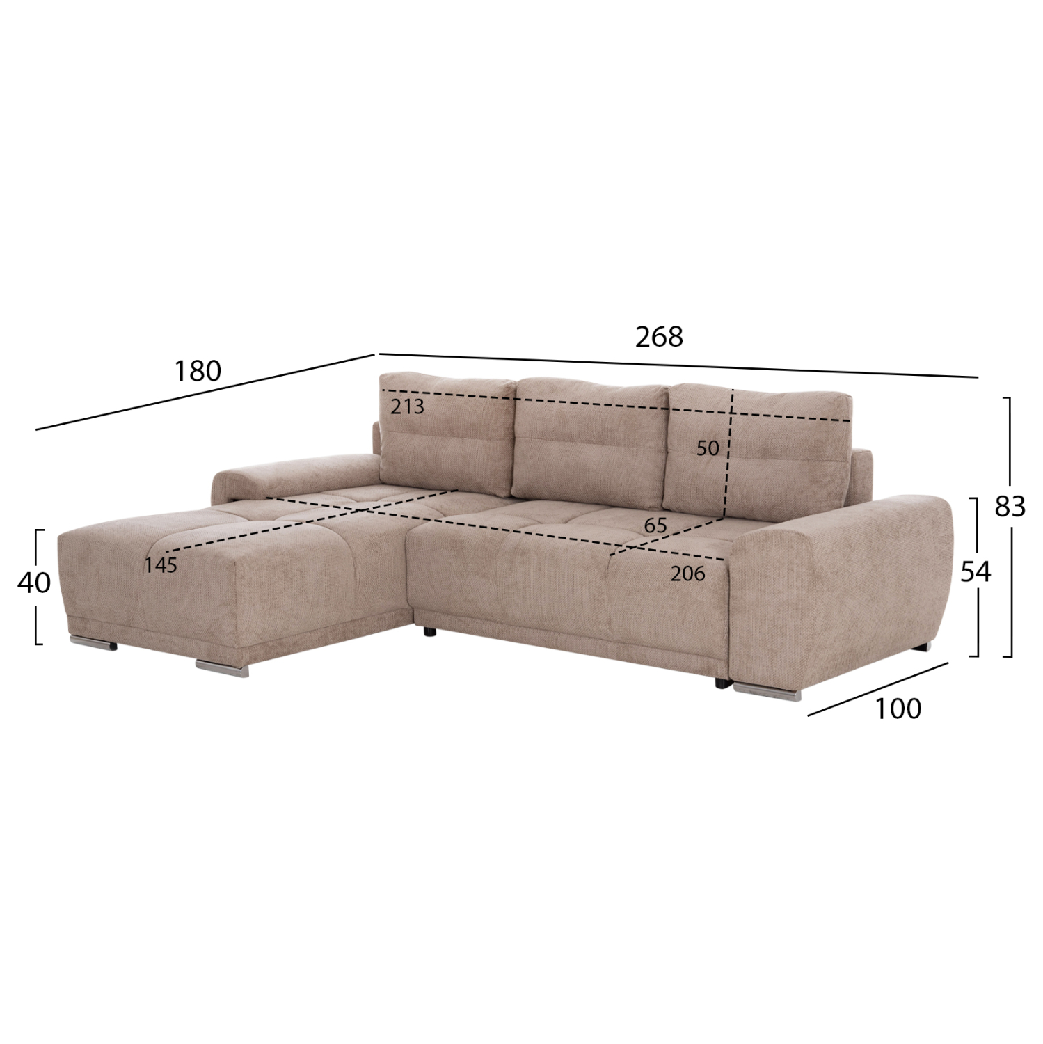 ΚΑΝΑΠΕΣ ΚΡΕΒΑΤΙ ΑΡΙΣΤΕΡΗ ΓΩΝΙΑ COMFYRA HM3336.03L ΜΠΕΖ ΥΦΑΣΜΑ 268x180x83Υεκ