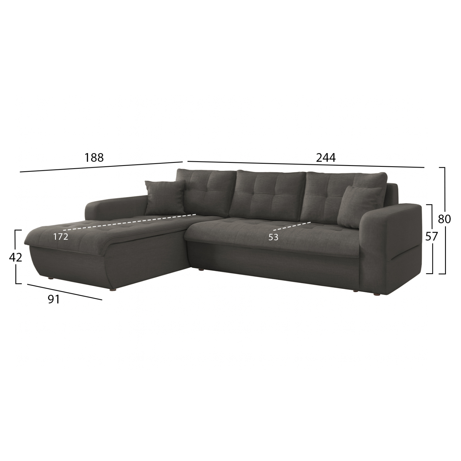 ΚΑΝΑΠΕΣ ΚΡΕΒΑΤΙ ΑΡΙΣΤΕΡΗ ΓΩΝΙΑ KANSO HM3338.01L ΓΚΡΙ ΥΦΑΣΜΑ 244x188x80Υεκ