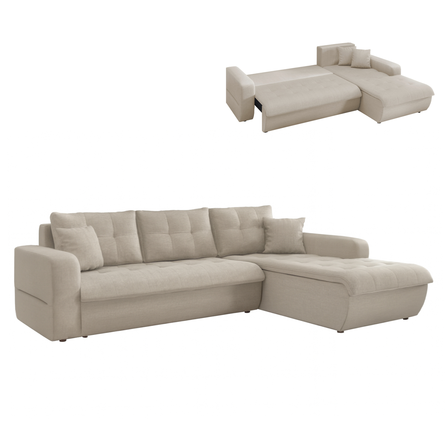 Καναπές κρεβάτι Δεξιά Γωνία KANSO με Μπεζ Υφασμάτινη Επένδυση