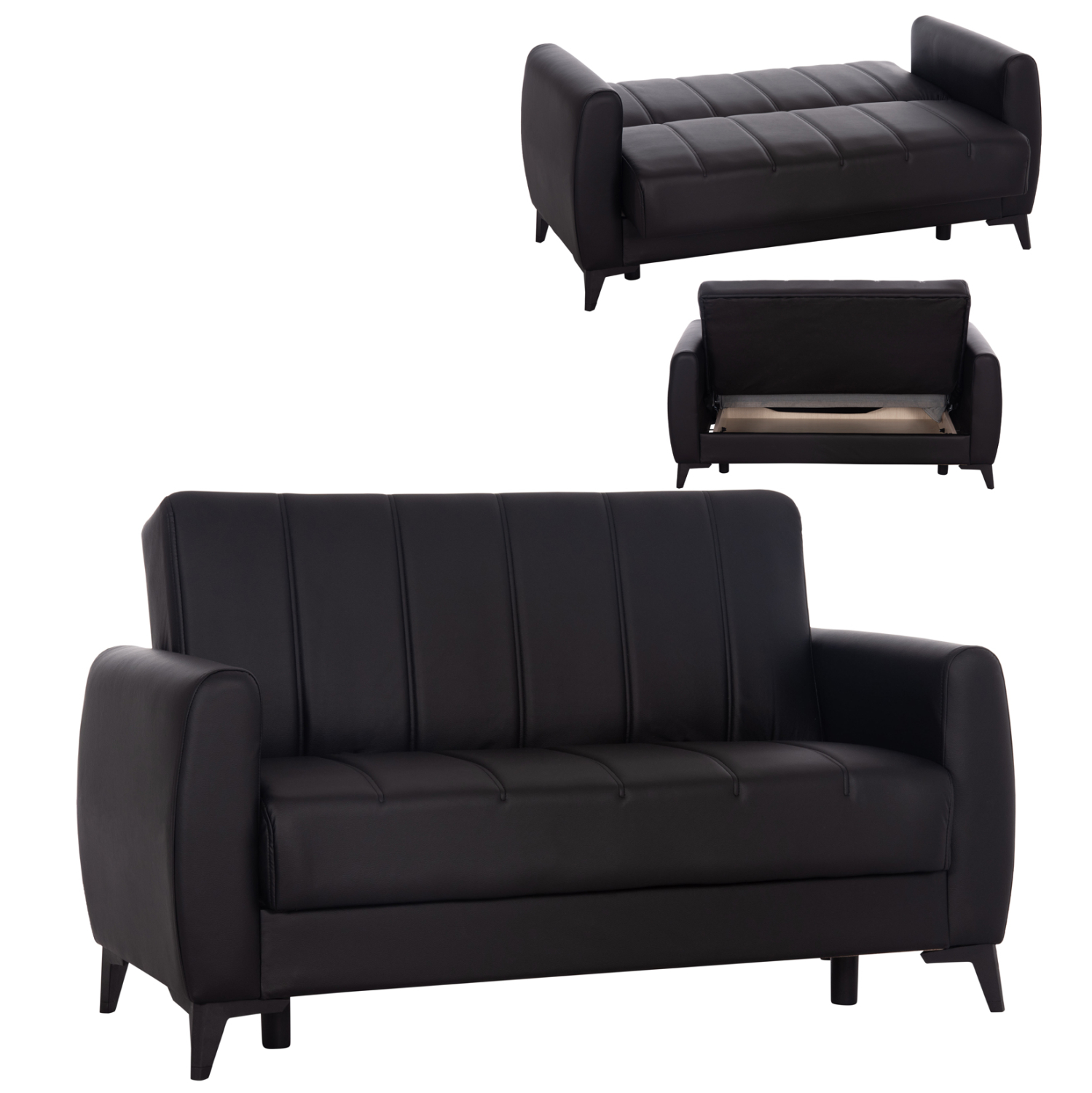 Ο NIKKO είναι ένας όμορφος διθέσιος καναπές-κρεβάτι. Η επένδυσή του είναι με εξαιρετικής ποιότητας ΜΑΥΡΟ PU δέρμα, ενώ τα μπράτσα είναι φαρδιά τόσο-όσο για να προσφέρουν άνεση και στήριξη.