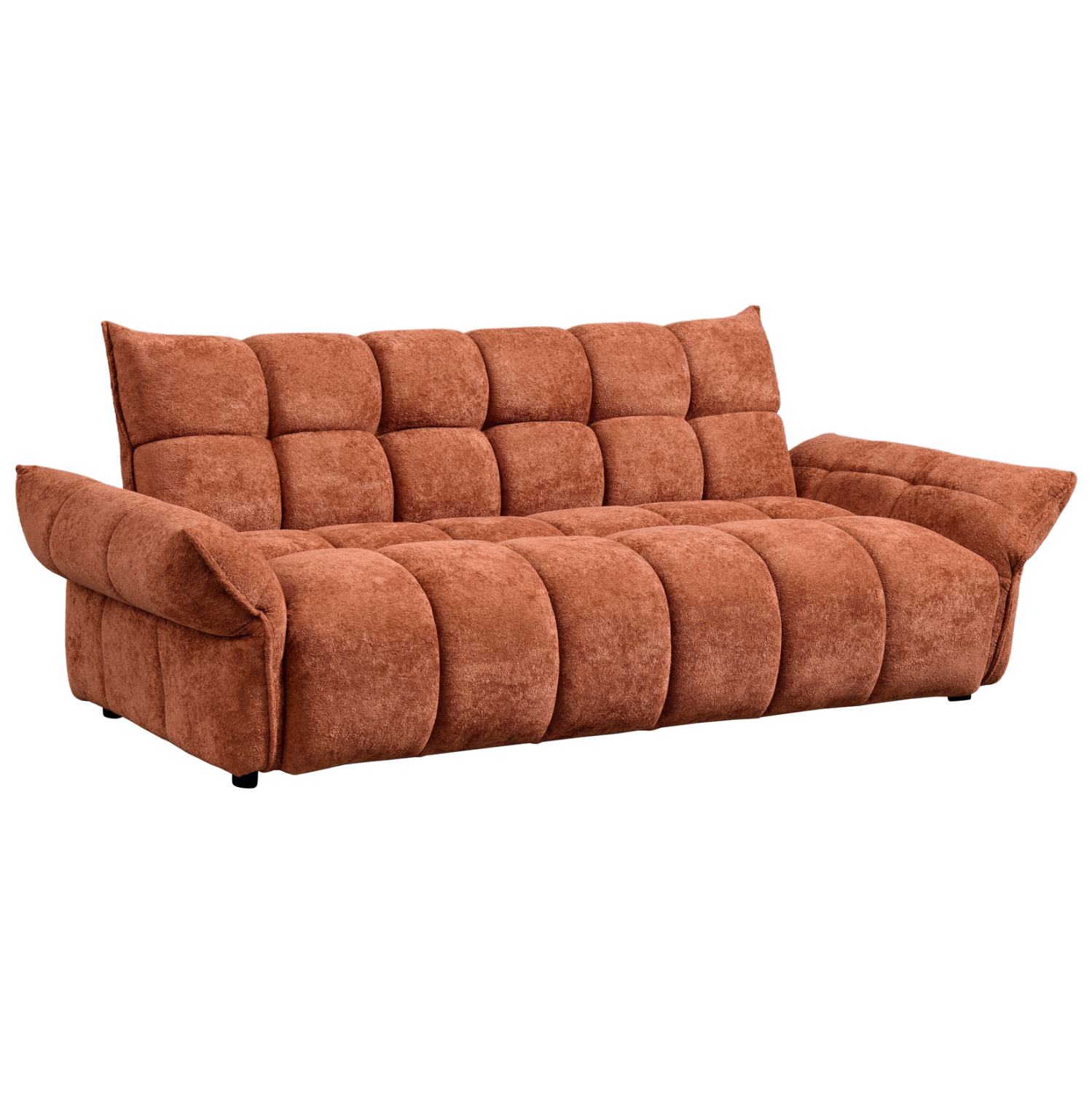 Ο MELU αποτελεί μια premium επιλογή καναπέ κρεβάτι που συνδυάζει σύγχρονο design με προηγμένη τεχνολογία άνεσης. Η υφασμάτινη επένδυση σε χρώμα ΤΕΡΑΚΟΤΑ και σε καπιτονέ τεχνοτροπία καλύπτει τόσο το μπροστινό όσο και το πίσω μέρος της πλάτης, επιτρέποντας τοποθέτηση ακόμη και στο κέντρο του χώρου. Τα μπράτσα με ρύθμιση κλίσης τριών επιπέδων προσφέρουν ευελιξία και εξατομικευμένη στήριξη, αναβαθμίζοντας την καθημερινή εμπειρία χαλάρωσης.