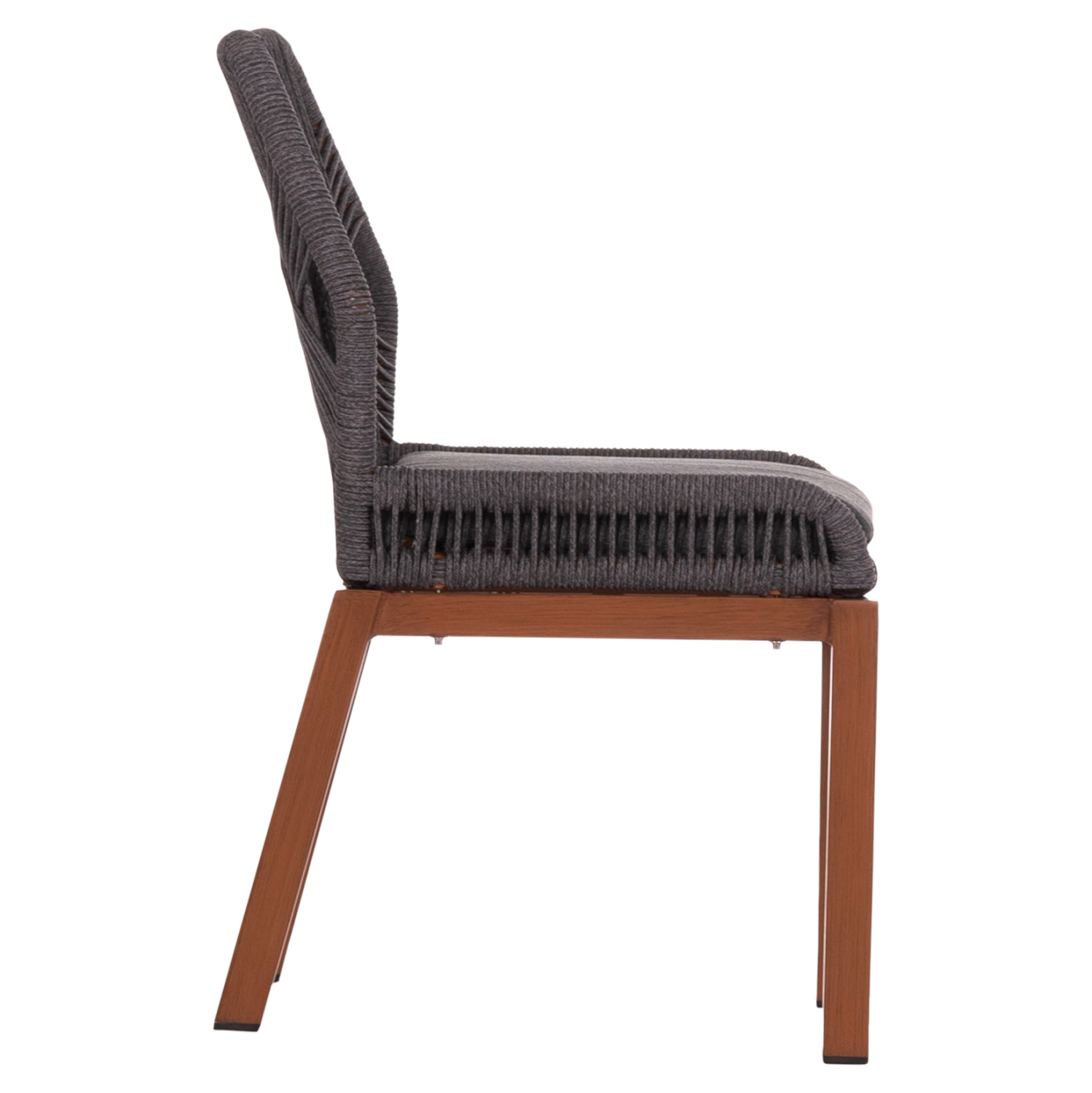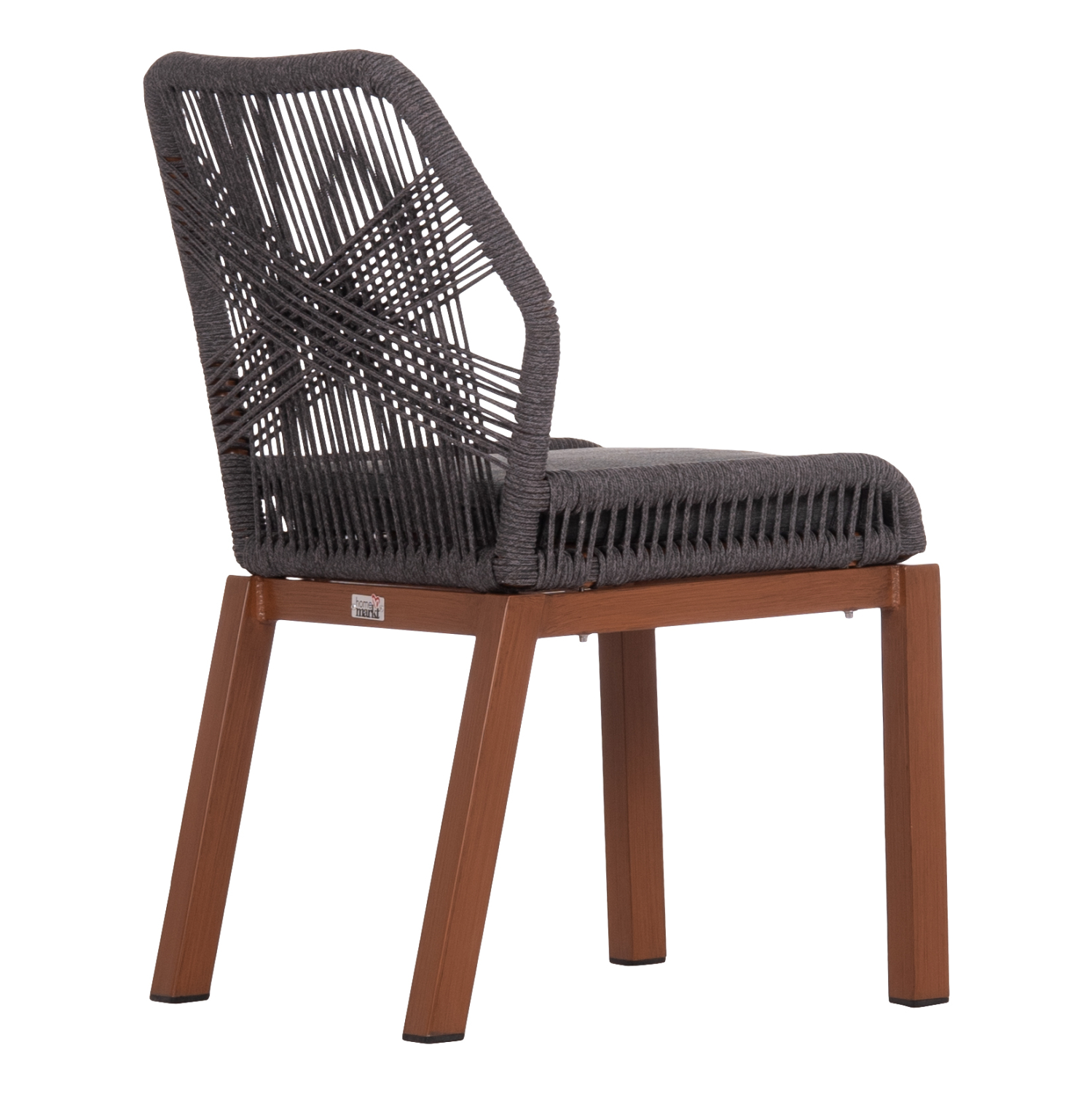 Η καρέκλα τραπεζαρίας εξωτερικού χώρου HOWARD δεν περνάει απαρατήρητη. Είναι κατασκευασμένη από αλουμίνιο και σχοινί. Τα πόδια είναι σε ΚΑΦΕ χρώμα ενώ το σχοινί και το μαξιλάρι καθίσματος είναι σε ΣΚΟΥΡΗ ΓΚΡΙ απόχρωση. Μια ποιοτική πρόταση τόσο για επαγγελματική χρήση, όσο και για οικιακή.