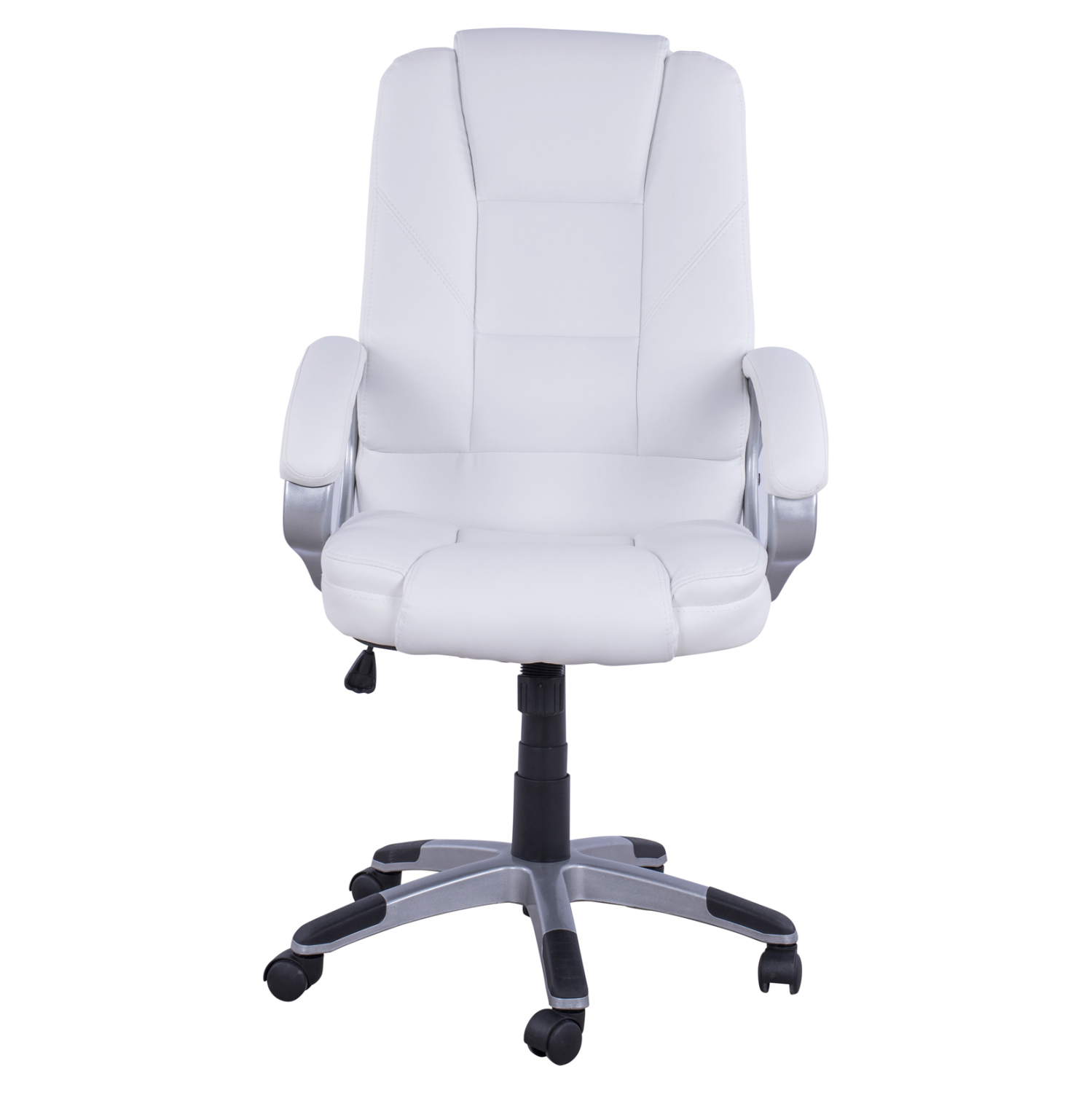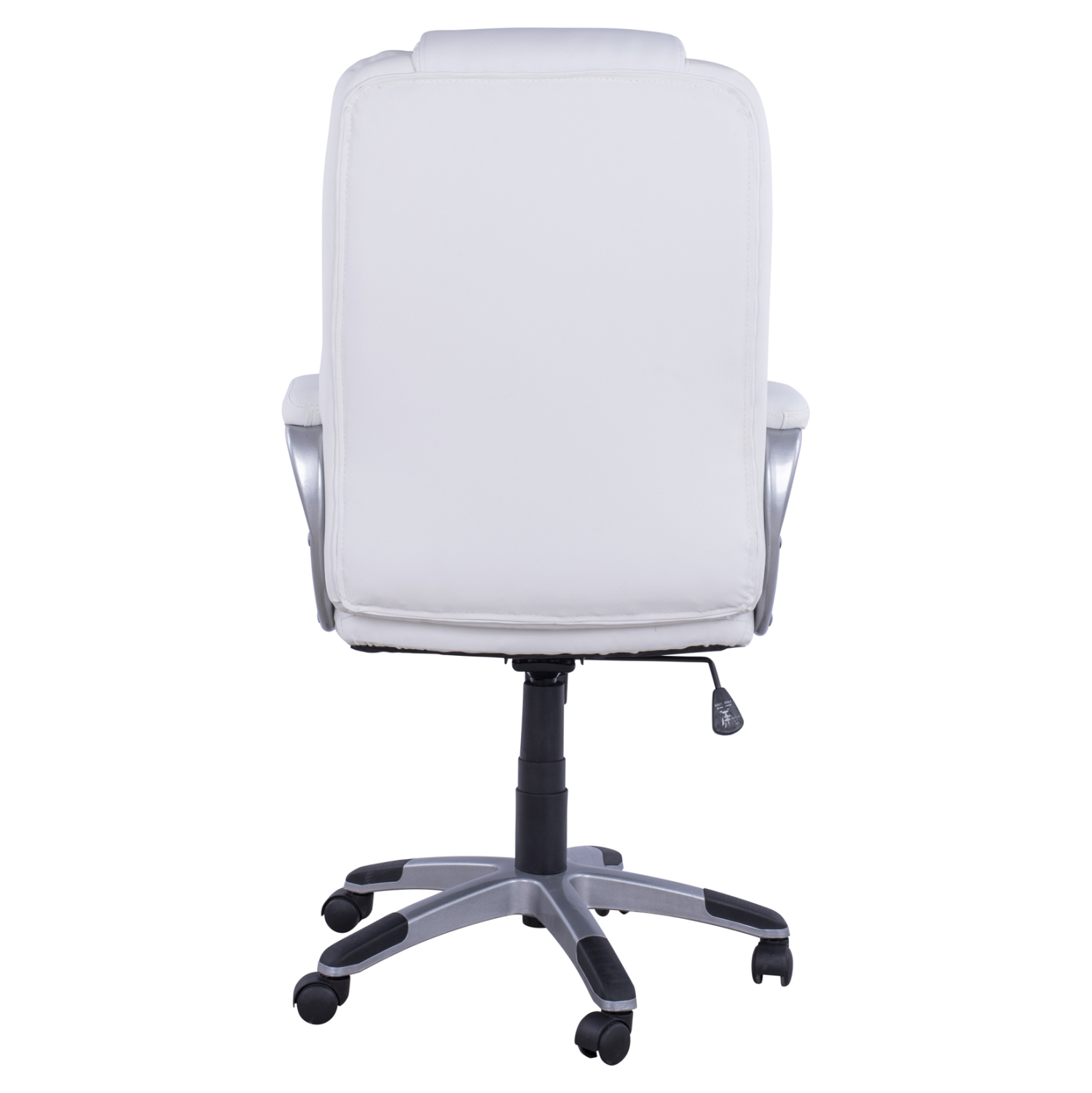 Διευθυντική καρέκλα γραφείου “JAYA” σε λευκό χρώμα. Μια «πλούσια» καρέκλα γραφείου με ψηλά μπράτσα με κλίση και επενδυμένα με μια λεπτή στρώση αφρολέξ σε PU δέρμα. Η πλάτη είναι ψηλή και ανατομική με εξαιρετικά πλούσια στρώση από αφρώδη υλικά για άνεση κατά την χρήση και υποστηρίζει ολόκληρο τον κορμό σας, ενώ είναι επενδυμένη με υψηλής ποιότητας PU δέρμα , όπως επίσης και το φαρδύ και αναπαυτικό κάθισμα με την αναπαυτική επιφάνεια. Η βάση είναι ασημί σε σχήμα «αστέρι» με μαύρες λεπτομέρειες στο τελείωμα.