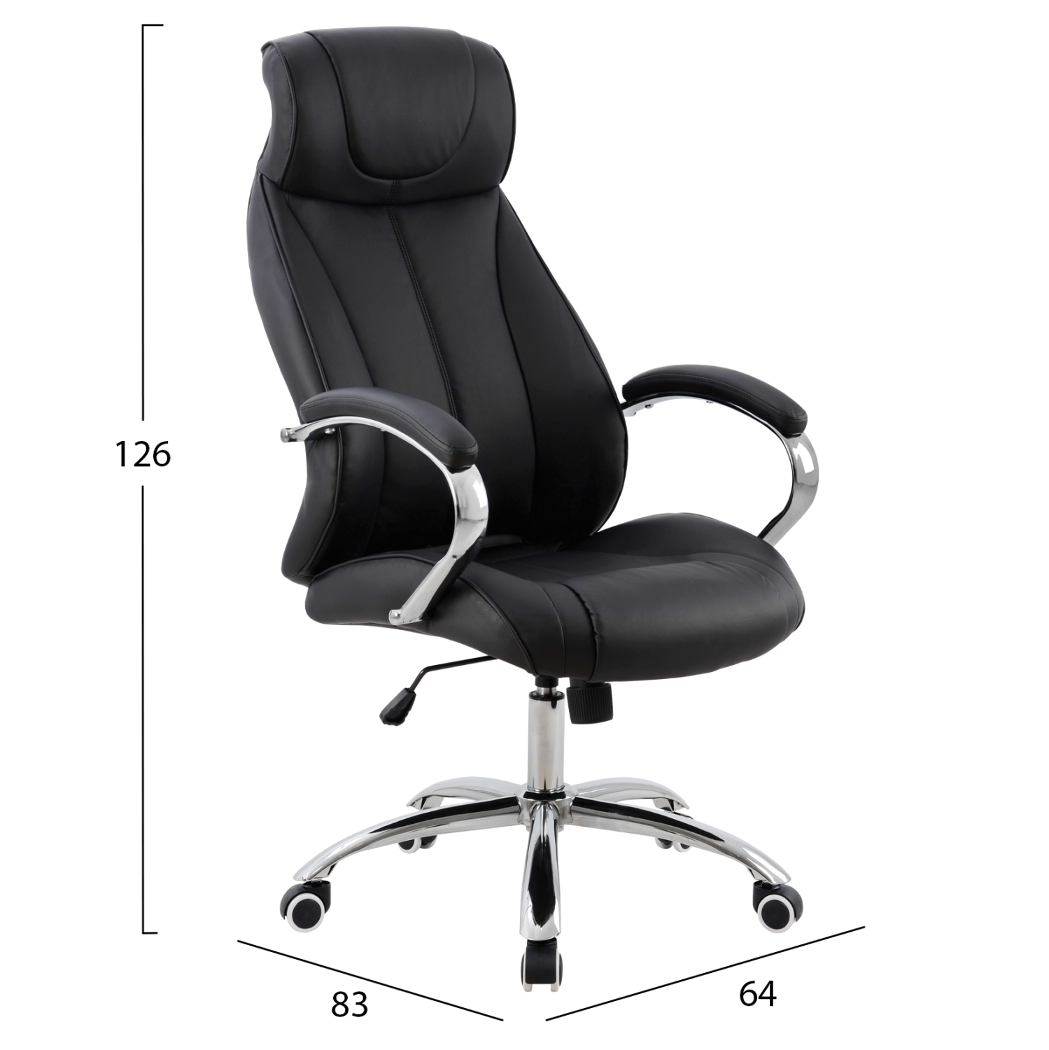 Καρέκλα γραφείου διευθυντική με μπράτσα και ανάκλιση από υψηλής ποιότητας PU σε μαύρο χρώμα και μοναδικό design.