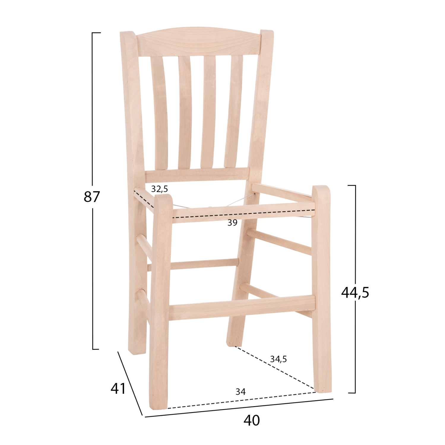 Η καρέκλα καφενείου MONTE, για επαγγελματική χρήση, είναι η παραδοσιακή καρέκλα από ξύλο και παραδίδεται ΑΒΑΦΗ. Η πλάτη έχει σχέδιο με κάθετα πηχάκια και αισθητικά είναι κατάλληλη για ταβέρνα, καφενείο, αλλά και γενικότερα για χώρους διακοσμημένους