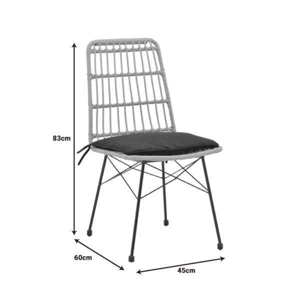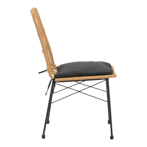 Καρέκλα Naoki pakoworld rattan σε φυσική απόχρωση με μαύρο μαξιλάρι και μεταλλικό μαύρο πόδι 45x60x83εκ