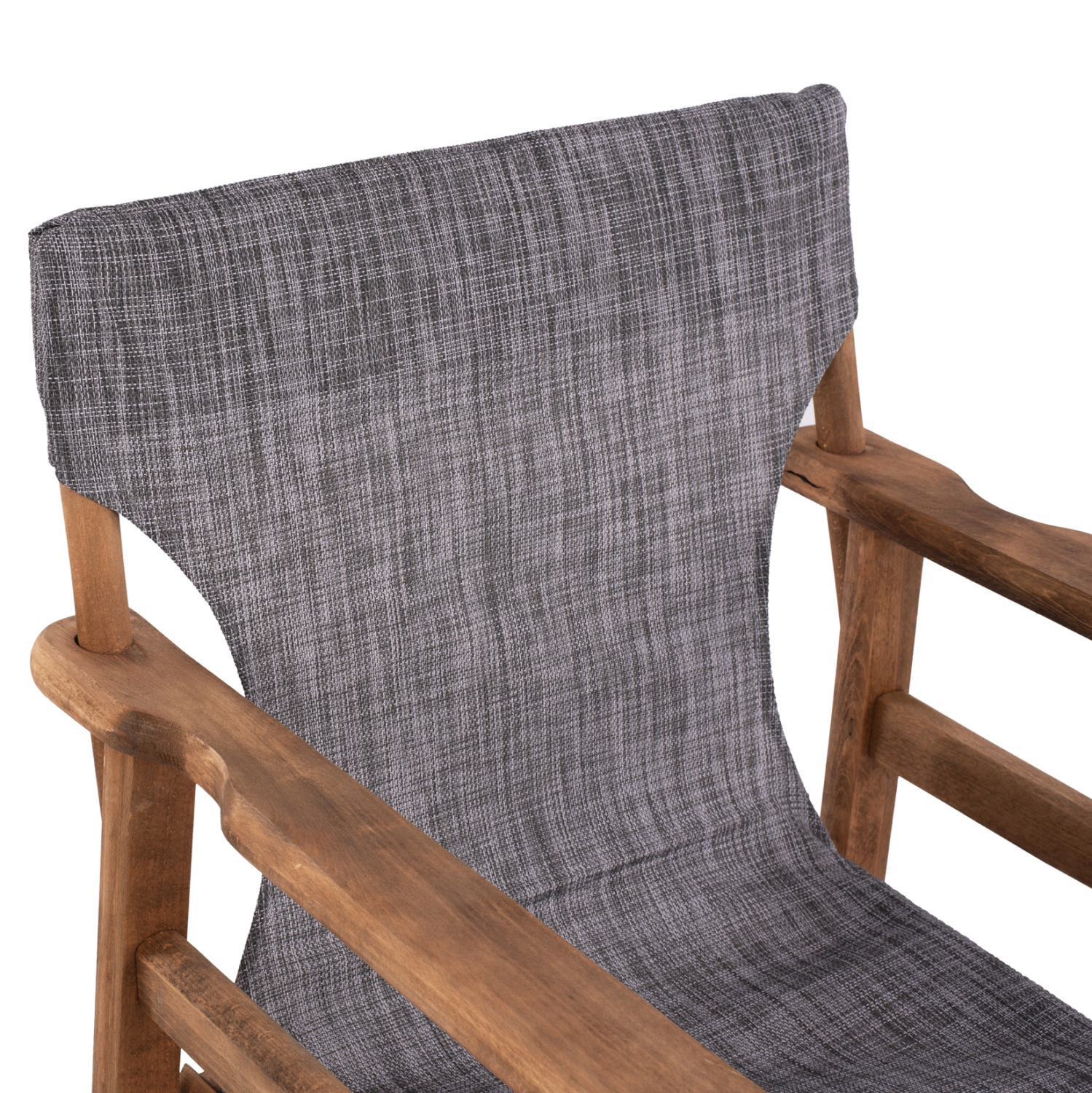 Κατασκευασμένη από ενισχυμένο σκελετό 100% μασίφ ξύλο φουρνιστής οξιάς σε καρυδί απόχρωση, με ύφασμα διάτρητο PVC σε γκρι χρώμα.
