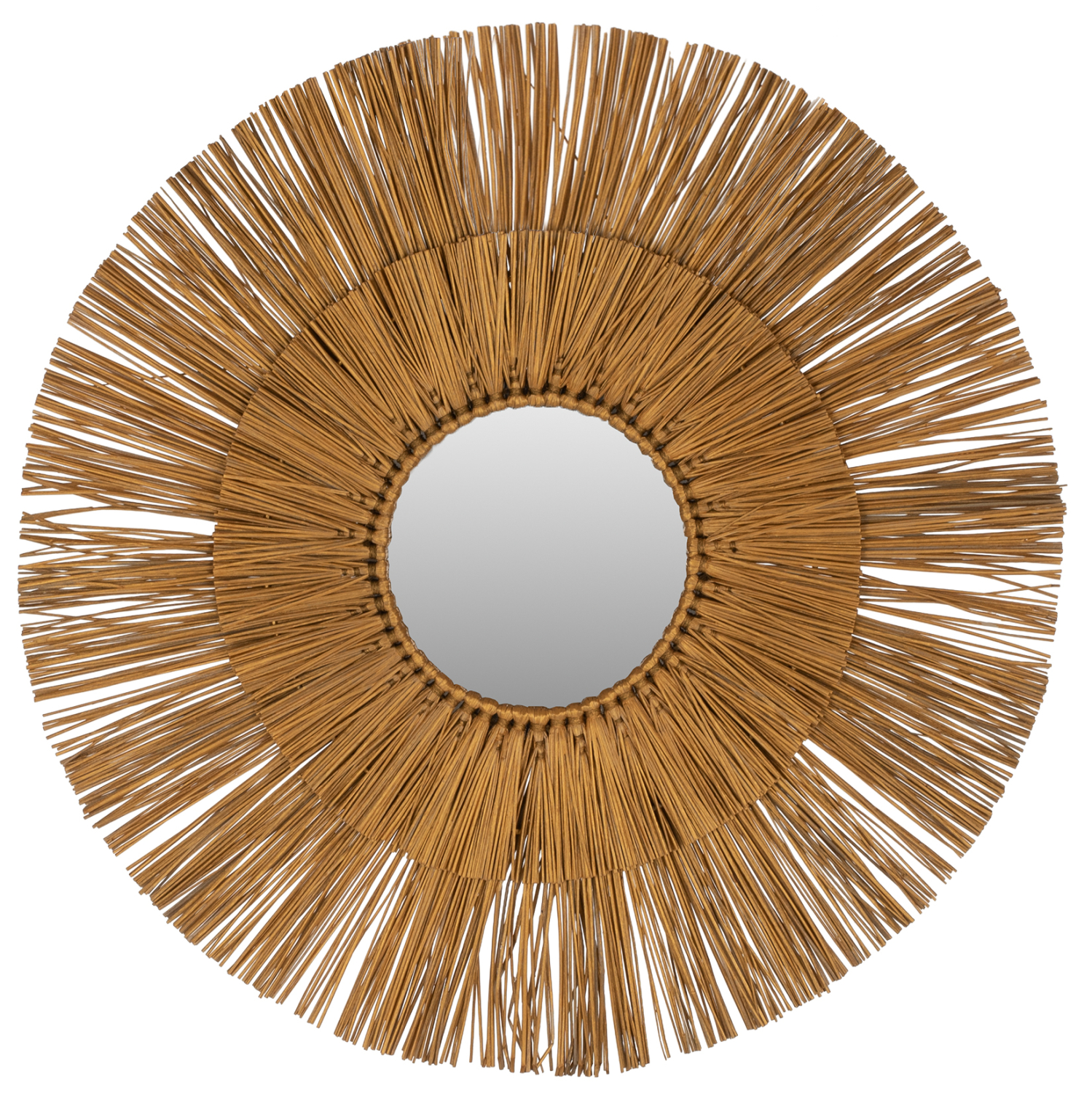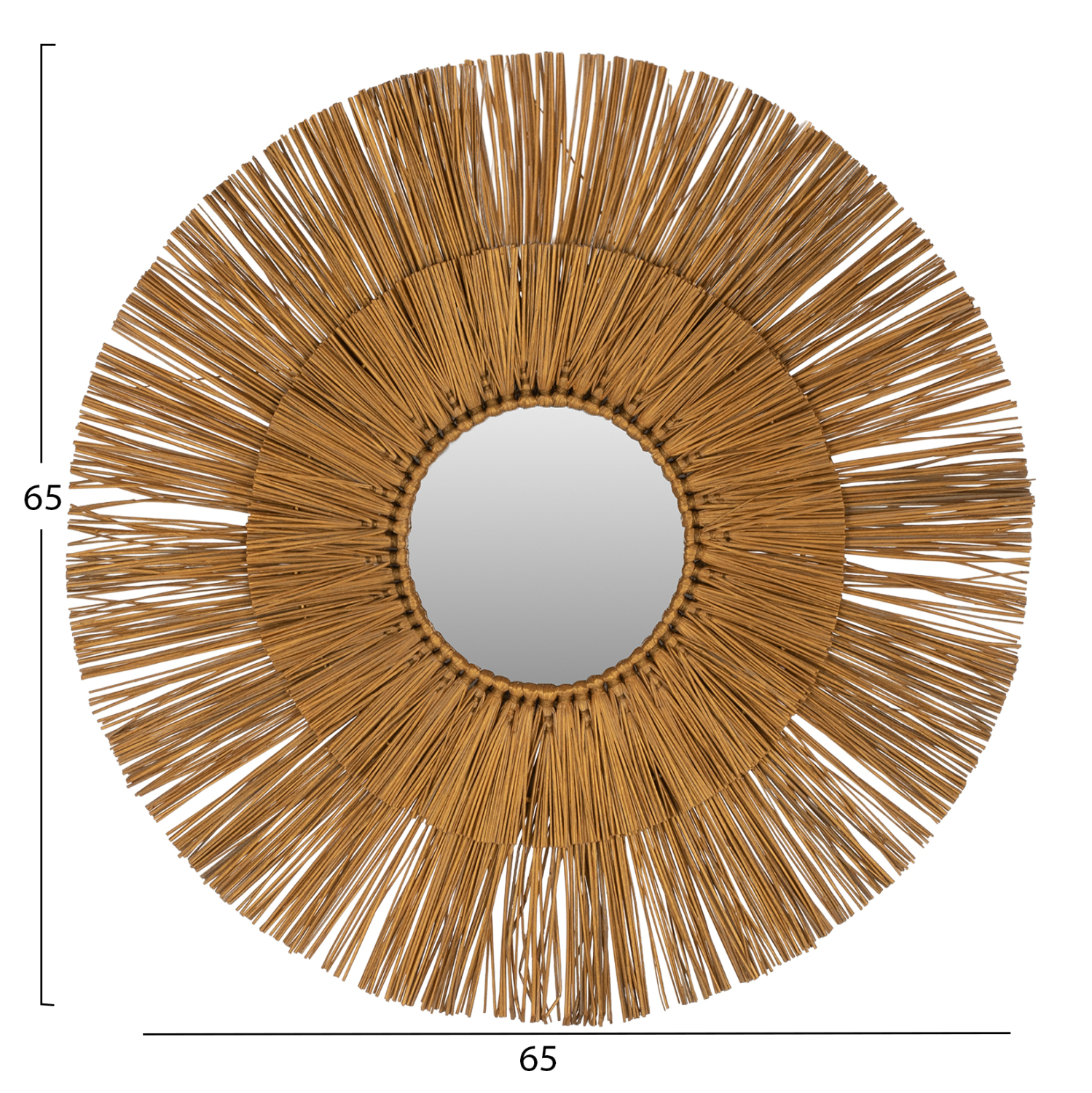O καθρέπτης ΗΜ7801, είναι πραγματικά ένα εντυπωσιακό κομμάτι στην διακόσμηση του χώρου σας! Το design του είναι όμορφο με διπλό στρογγυλό πλαίσιο από το χόρτο Mendong, το οποίο στο κέντρο του «φιλοξενεί» τον καθρέπτη, ενώ είναι σε χρυσό χρώμα. Το χαρακτηριστικό είναι ότι ο καθρέφτης είναι μικρός και αποτελεί κυρίως διακοσμητικό στοιχείο.