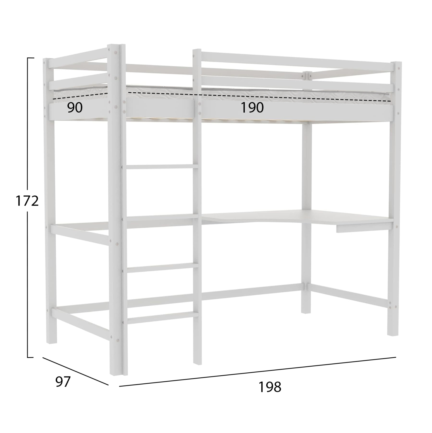 ΚΟΥΚΕΤΑ ΠΑΙΔΙΚΗ ΜΕ ΓΡΑΦΕΙΟ AKRON HM21311.01 ΞΥΛΟ ΠΕΥΚΟΥ ΛΕΥΚΟ–ME ΣΤΡΩΜΑ 90×190εκ