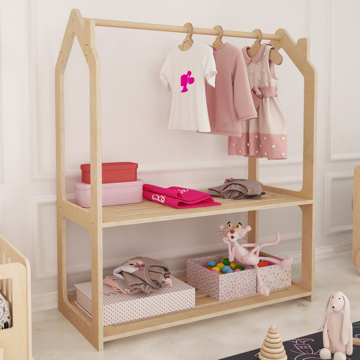 Η παιδική κρεμάστρα της σειράς επίπλων SANI ήρθε για να σας κάνει την ζωή πιο εύκολη στο παιδικό δωμάτιο. Είναι κατασκευασμένη από ξύλο σημύδας σε ΦΥΣΙΚΟ χρώμα και αυτό που θα λατρέψουν τα παιδιά είναι το design της σε σχήμα σπιτάκι. Διαθέτει 2 μακριά ράφια, ενώ η ράγα για κρεμάστρες βρίσκεται ακριβώς από επάνω. Ένα έπιπλο που θα λατρέψετε με την πρώτη ματιά!