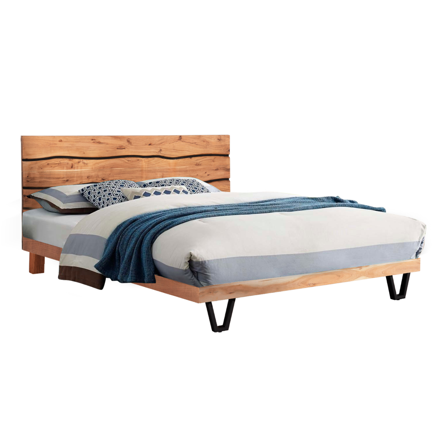 Το ALICIA είναι ένα πολυτελές και στιβαρό κρεβάτι με σκελετό και κεφαλάρι από φυσικό μασίφ ξύλο ΑΚΑΚΙΑΣ σε ANOIXTO ΦΥΣΙΚΟ χρώμα. Τα εμπρός πόδια είναι μεταλλικά σε ΜΑΥΡΟ χρώμα. Μια πρόταση που η αντοχή στον χρόνο είναι ένα από τα κύρια χαρακτηριστικά της. Ιδανικό τόσο για το υπνοδωμάτιο του σπιτιού σας, όσο και για επαγγελματικούς χώρους, όπως ξενοδοχεία, Airbnb, κτλ.