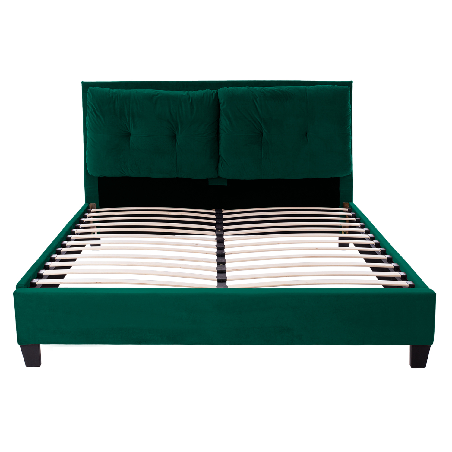 Εμείς λοιπόν, σας προσφέρουμε το κρεβάτι BILLIE για να απολαμβάνετε κάθε στιγμή τον ύπνο σας. Σε διάσταση για στρώμα 160×200 εκ, είναι επαρκέστατα άνετο για να χωρέσουν δύο άτομα. Έχει κεφαλάρι με δύο καπιτονέ μαξιλάρια δεμένα πάνω του (μη αποσπώμενα) για να προσφέρει άνεση όταν κάθεστε για να διαβάσετε το βιβλίο σας, ενώ ολόκληρη η επένδυσή του έχει γίνει με εξαιρετικής ποιότητας βελούδινο ύφασμα σε χρώμα κυπαρισσί. Το στρώμα «κάθεται» πάνω σε δύο σειρές από ανατομικές τάβλες, ακολουθώντας τον παραδοσιακό τρόπο κατασκευής κρεβατιού.