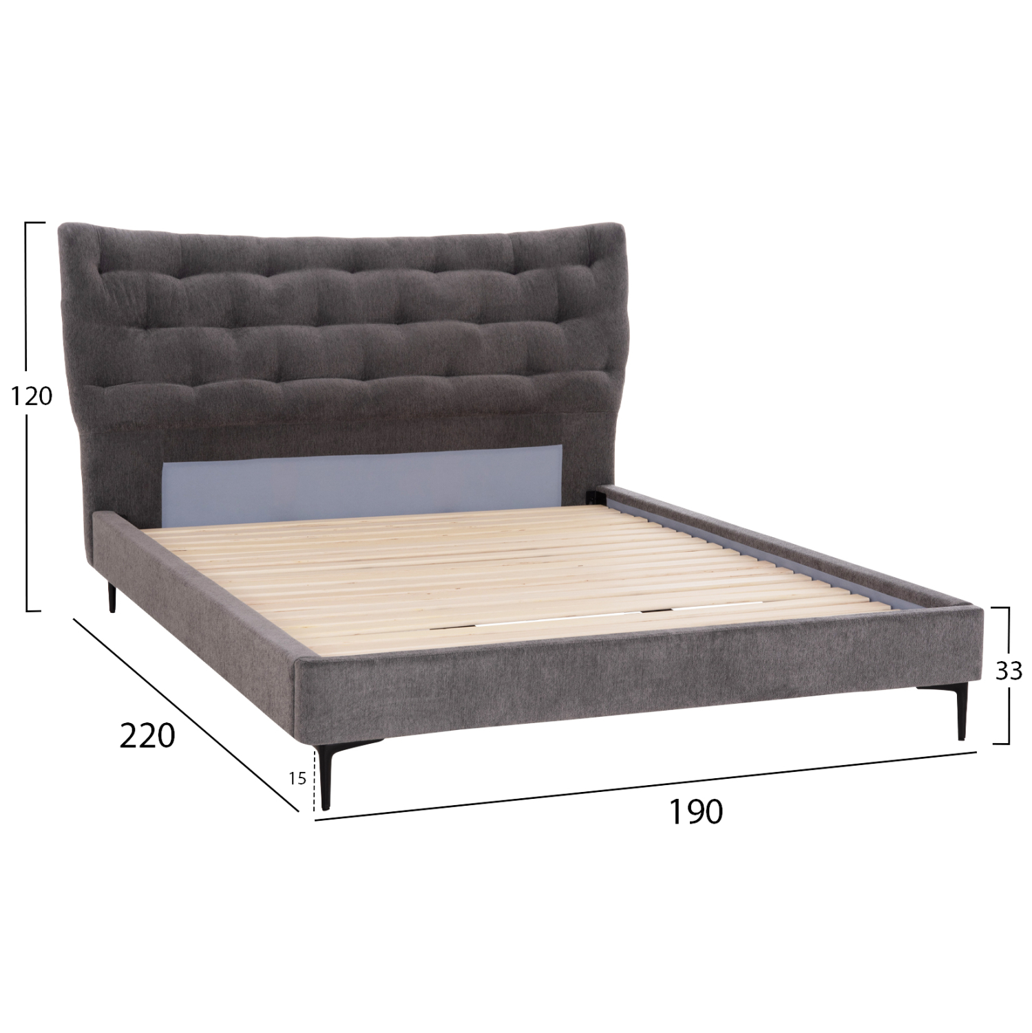 ΚΡΕΒΑΤΙ ΔΙΠΛΟ JILL HM737.01 ΥΦΑΣΜΑ ΣΕ ΓΚΡΙ–ΓΙΑ ΣΤΡΩΜΑ 160×200εκ.