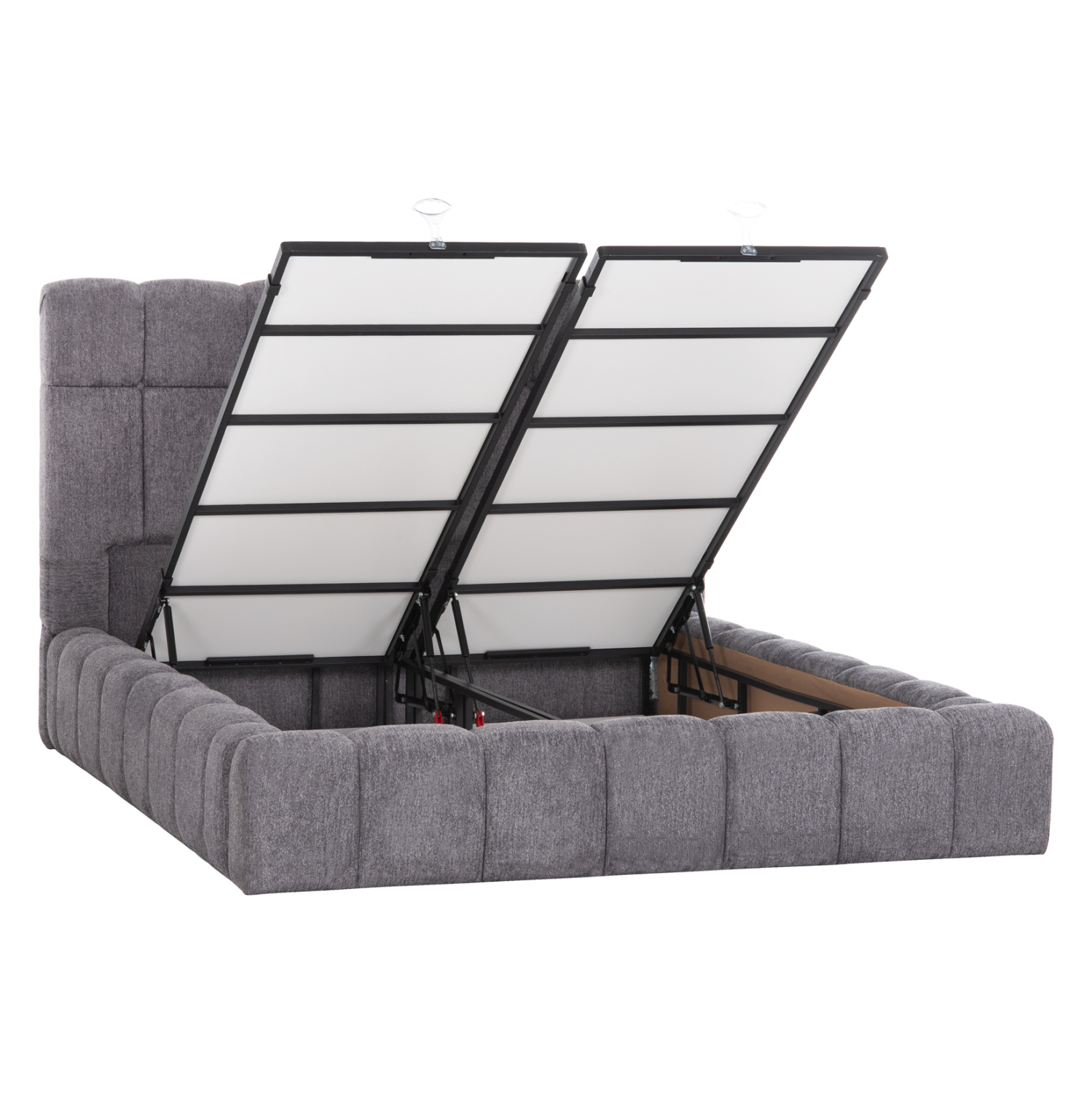 ΚΡΕΒΑΤΙ ΔΙΠΛΟ ΜΕ ΣΤΡΩΜΑ & ΑΠΟΘ.ΧΩΡΟ RAMON HM21168 ΓΚΡΙ ΜΠΟΥΚΛΕ–ΓΙΑ 160×200εκ