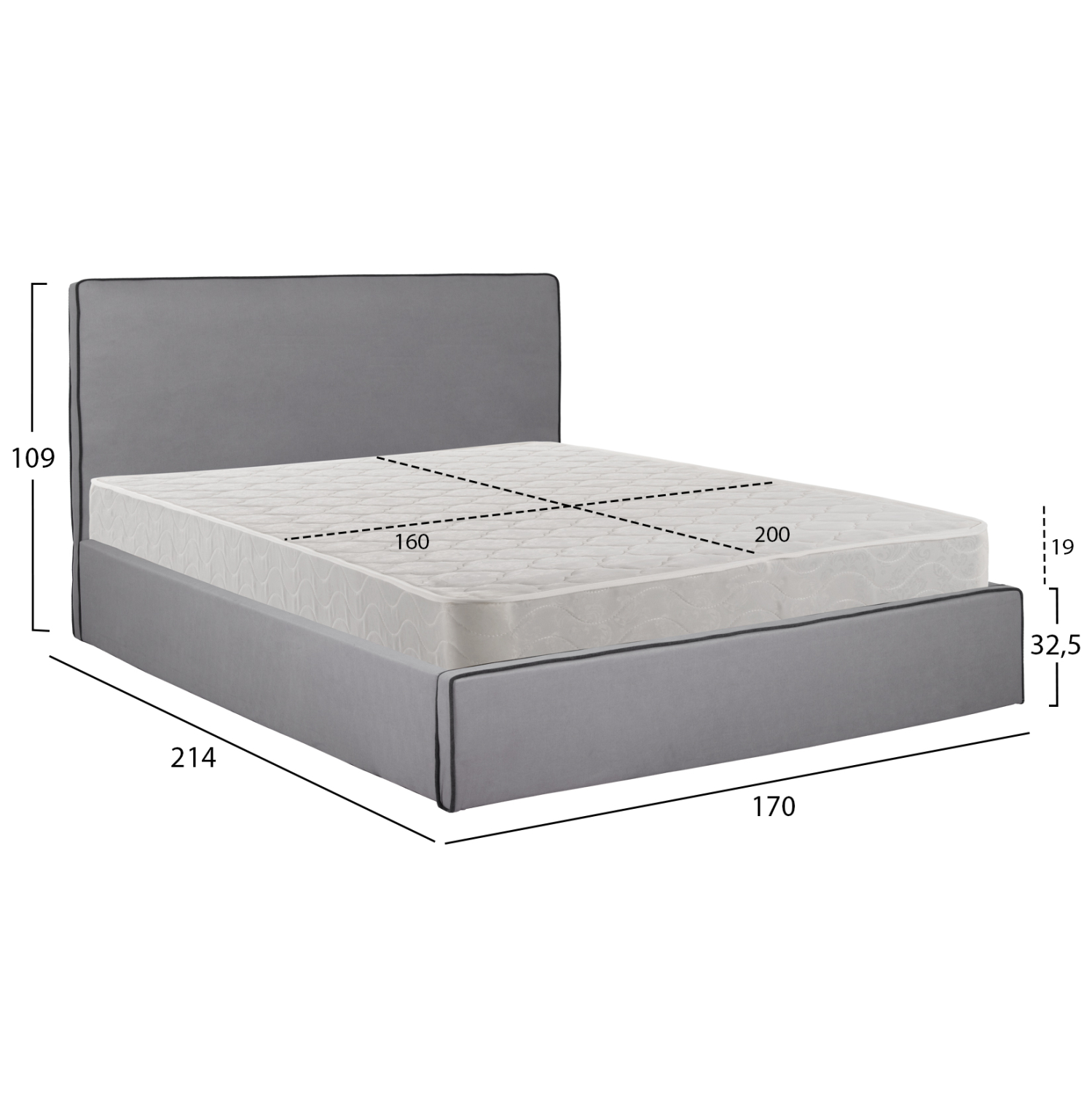 ΚΡΕΒΑΤΙ ΔΙΠΛΟ & ΣΤΡΩΜΑ ALLIE HM21273.01 ΓΚΡΙ ΥΦΑΣΜΑ ΜΕ ΑΠΟΘ.ΧΩΡΟ–ΓΙΑ 160×200 εκ.