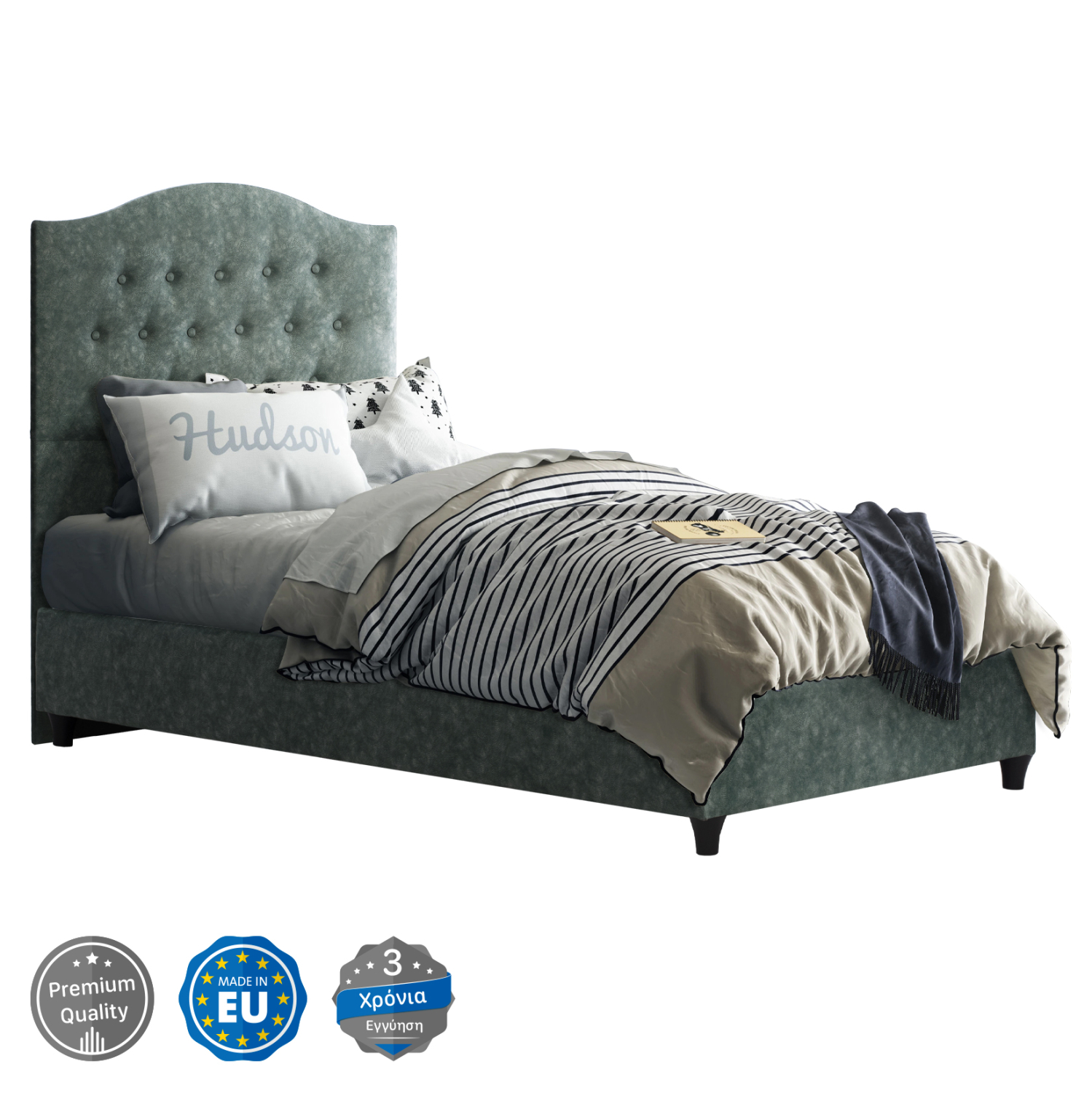 ΚΡΕΒΑΤΙ MALENA ΑΠΟ ΠΡΑΣΙΝΟ ΥΦΑΣΜΑ Τ. NUBUK HM651.27 ΓΙΑ ΣΤΡΩΜΑ 90×200 εκ.