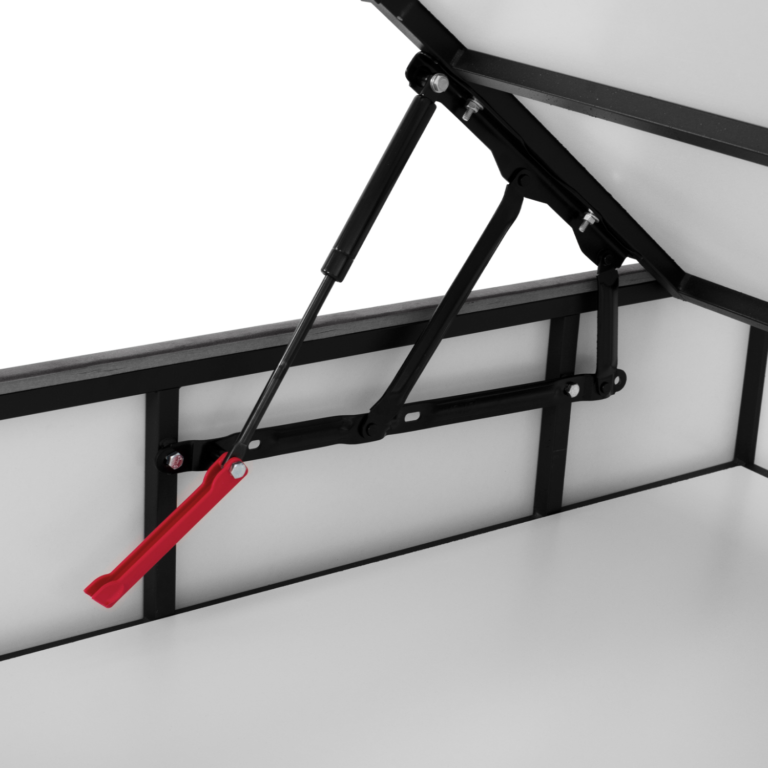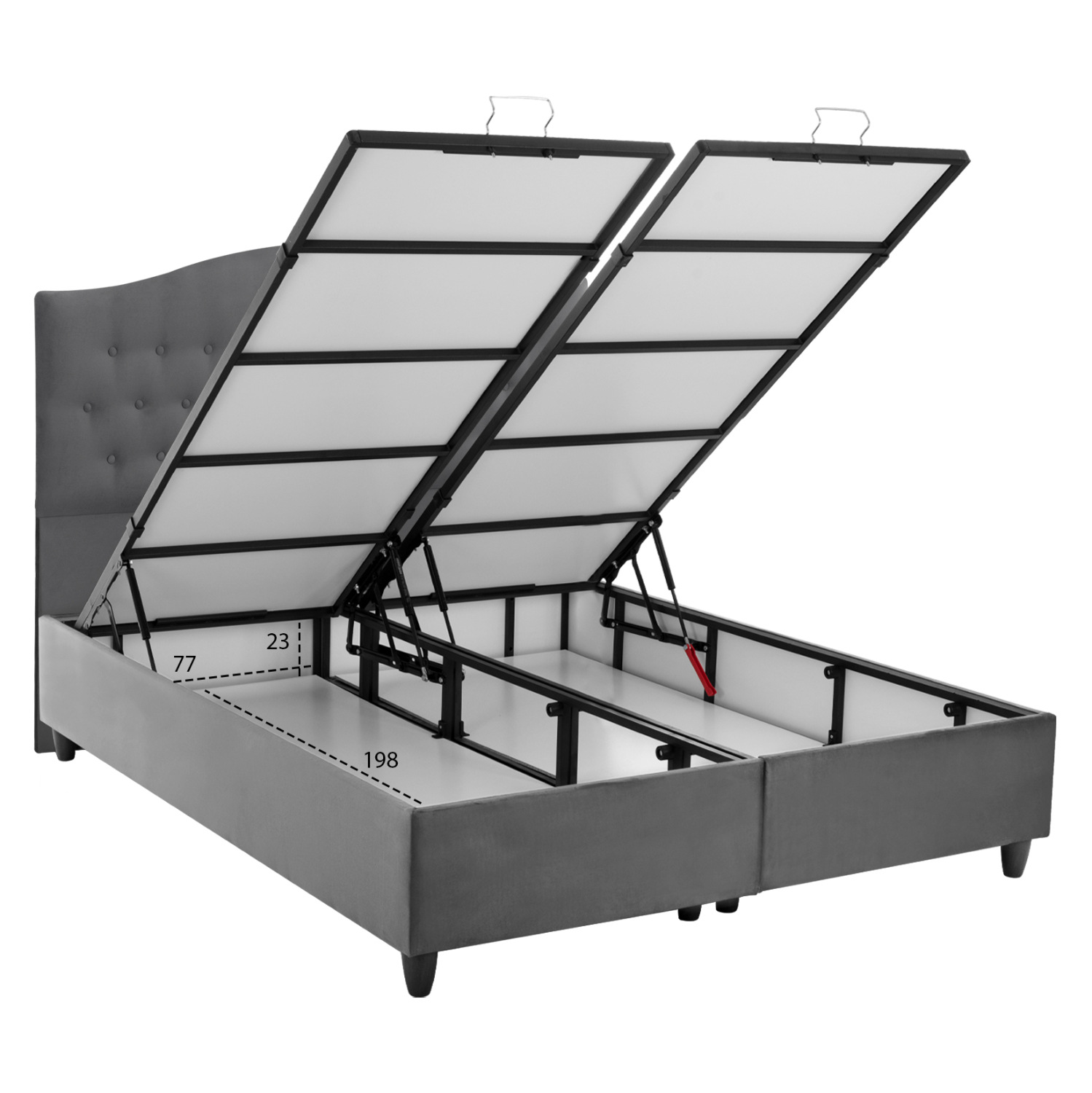 Ο σκελετός του κρεβατιού είναι ξύλινος, πράγμα που καθιστά το κρεβάτι εξαιρετικά στιβαρό και ανθεκτικό, χάρη και στην ενισχυμένη κατασκευή του. Ο μηχανισμός αποθήκευσης είναι μεταλλικός για αντοχή στο βάρος και στον χρόνο.