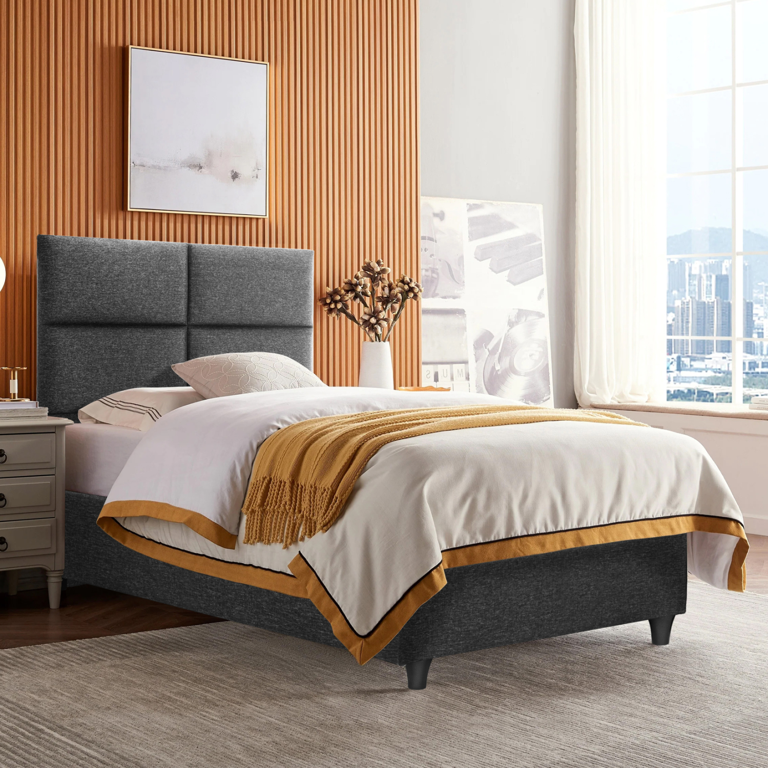 Το κρεβάτι MILO έχει ψηλό κεφαλάρι, επενδυμένο με καπιτονέ τεχνοτροπία σε μεγάλα ορθογώνια, ενώ και όλη η επένδυση του κρεβατιού είναι από υπέροχο ανάγλυφο ύφασμα. Το ΓΚΡΙ χρώμα σε όλο το κρεβάτι είναι όμορφο και μπορεί να συνδυαστεί με πληθώρα διακοσμητικών μοτίβων.