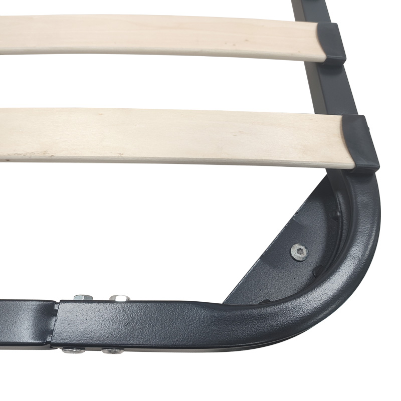 - Φέρει μεταλλικό πλαίσιο με τάβλες (απόσταση μεταξύ τους 7,5εκ) το οποίο φέρει στήριξη σε μεταλλικά μάυρα πόδια.