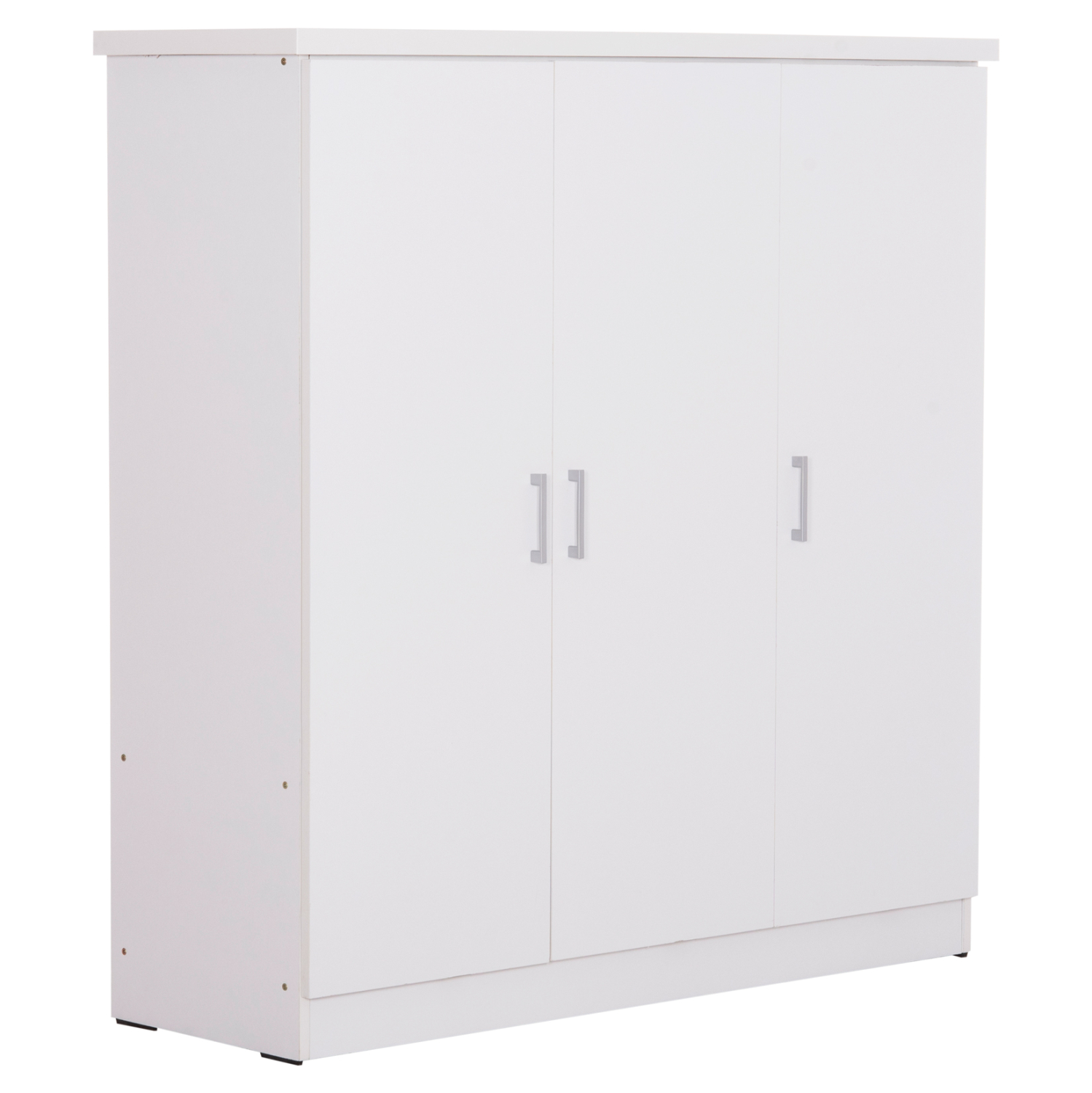 Η τρίφυλλη ντουλάπα FUENTO είναι μια πρακτικότατη, σχετικά κοντή (άρα ιδανική και για παιδικά δωμάτια), ντουλάπα που έχει φτιαχτεί με γνώμονα την όσο το δυνατόν καλύτερη εκμετάλλευση του χώρου. Έχει 3 πόρτες, αλλά με απροσδόκητα άνετους χώρους στο εσωτερικό της. Η πλευρά με την διπλή πόρτα διαθέτει ράφια και μια μεταλλική μπάρα για κρέμαση. Η πλευρά με την μονή πόρτα διαθέτει μόνο ράφια. Είναι κατασκευασμένη από μελαμίνη σε ΛΕΥΚΟ χρώμα και αισθητικά μπορεί να ταιριάξει με πολλά άλλα στυλ, χάρη και στις «καθαρές» γραμμές της.