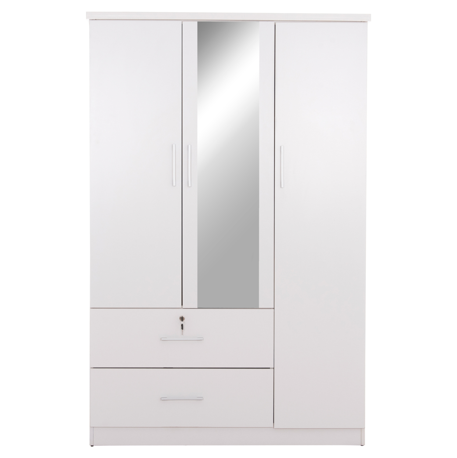 Η τρίφυλλη ντουλάπα JARRY είναι μια πρακτικότατη ντουλάπα που έχει φτιαχτεί με γνώμονα την όσο το δυνατόν καλύτερη εκμετάλλευση του χώρου. Έχει 3 πόρτες, αλλά με απροσδόκητα άνετους χώρους στο εσωτερικό της. Η πλευρά με την διπλή πόρτα διαθέτει καθρέπτη στην μία πόρτα και μια μεταλλική μπάρα για κρέμαση ρούχων στο εσωτερικό, ενώ στο κάτω μέρος υπάρχουν 2 συρτάρια, ένα εκ των οποίων διαθέτει κλειδαριά. Η πλευρά με την μονή πόρτα διαθέτει 4 ράφια (5 αποθηκευτικοί χώροι). Είναι κατασκευασμένη από μελαμίνη σε ΛΕΥΚΟ χρώμα και αισθητικά μπορεί να ταιριάξει με πολλά άλλα στυλ, χάρη και στις «καθαρές» γραμμές της.