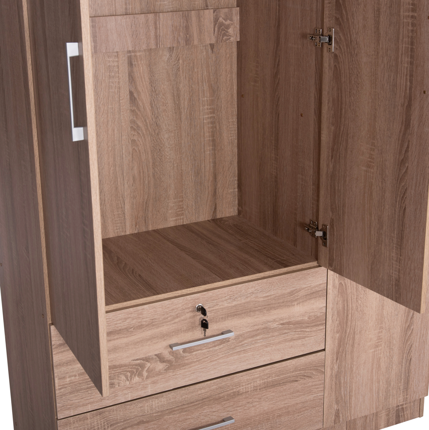 Η τρίφυλλη ντουλάπα JARRY είναι μια πρακτικότατη ντουλάπα που έχει φτιαχτεί με γνώμονα την όσο το δυνατόν καλύτερη εκμετάλλευση του χώρου. Έχει 3 πόρτες, αλλά με απροσδόκητα άνετους χώρους στο εσωτερικό της. Η πλευρά με την διπλή πόρτα διαθέτει καθρέπτη στην μία πόρτα και μια μεταλλική μπάρα για κρέμαση ρούχων στο εσωτερικό, ενώ στο κάτω μέρος υπάρχουν 2 συρτάρια, ένα εκ των οποίων διαθέτει κλειδαριά. Η πλευρά με την μονή πόρτα διαθέτει 4 ράφια (5 αποθηκευτικοί χώροι). Είναι κατασκευασμένη από μελαμίνη σε SONAMA OAK χρώμα και αισθητικά μπορεί να ταιριάξει με πολλά άλλα στυλ, χάρη και στις «καθαρές» γραμμές της.
