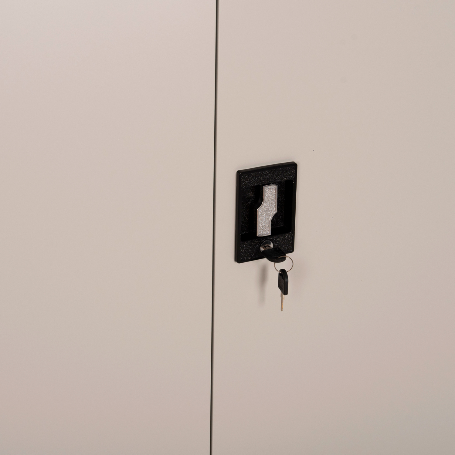 Η ντουλάπα είναι μεταλλική με ηλεκτροστατική βαφή. Η ηλεκτροστατική βαφή είναι μια διαδικασία ξηρής επίστρωσης που χρησιμοποιείται ως μεταλλικό φινίρισμα. Η ηλεκτροστατική βαφή είναι η επίστρωση ξηρής σκόνης μέσω ηλεκτροστατικής διαδικασίας, η οποία στη συνέχεια «κολλάει» στο μέταλλο μέσω της θερμότητας.