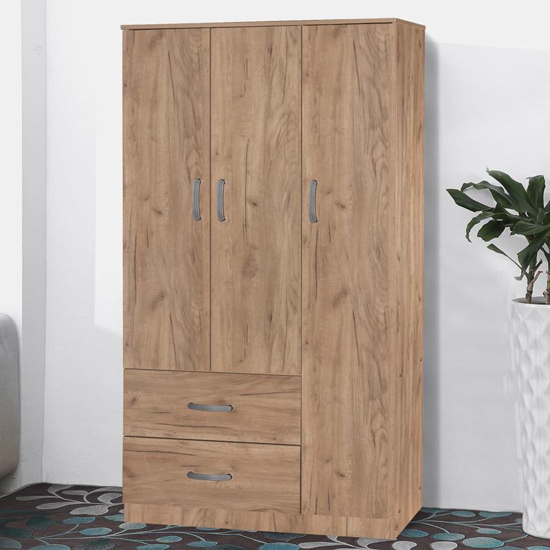 Ντουλάπα ρούχων τρίφυλλη Zelia pakoworld με 2 συρτάρια χρώμα φυσικό mo 90x42x180εκ