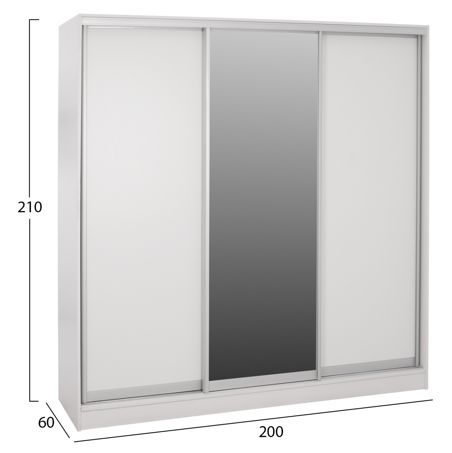 Ντουλάπα τρίφυλλη, σε λευκή απόχρωση, 200X60X210Υεκ