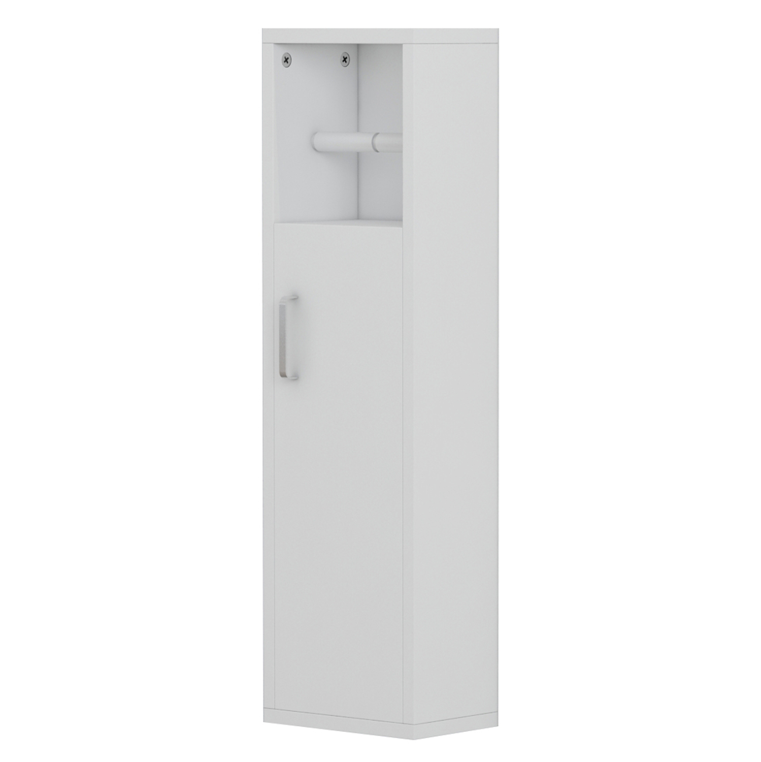Το DAMIEN είναι ένα ΛΕΥΚΟ ντουλάπι στενό με ενσωματωμένη θήκη για χαρτί υγείας στο επάνω μέρος. Πρόκειται για ένα πρακτικό έπιπλο που θα σας λύσει τα χέρια τόσο με τον αποθηκευτικό χώρο που διαθέτει, όσο και με τις βολικές του διαστάσεις. Επίσης, μπορείτε να το κρεμάσετε στον τοίχο για να προστατεύεται από την υγρασία του δαπέδου.