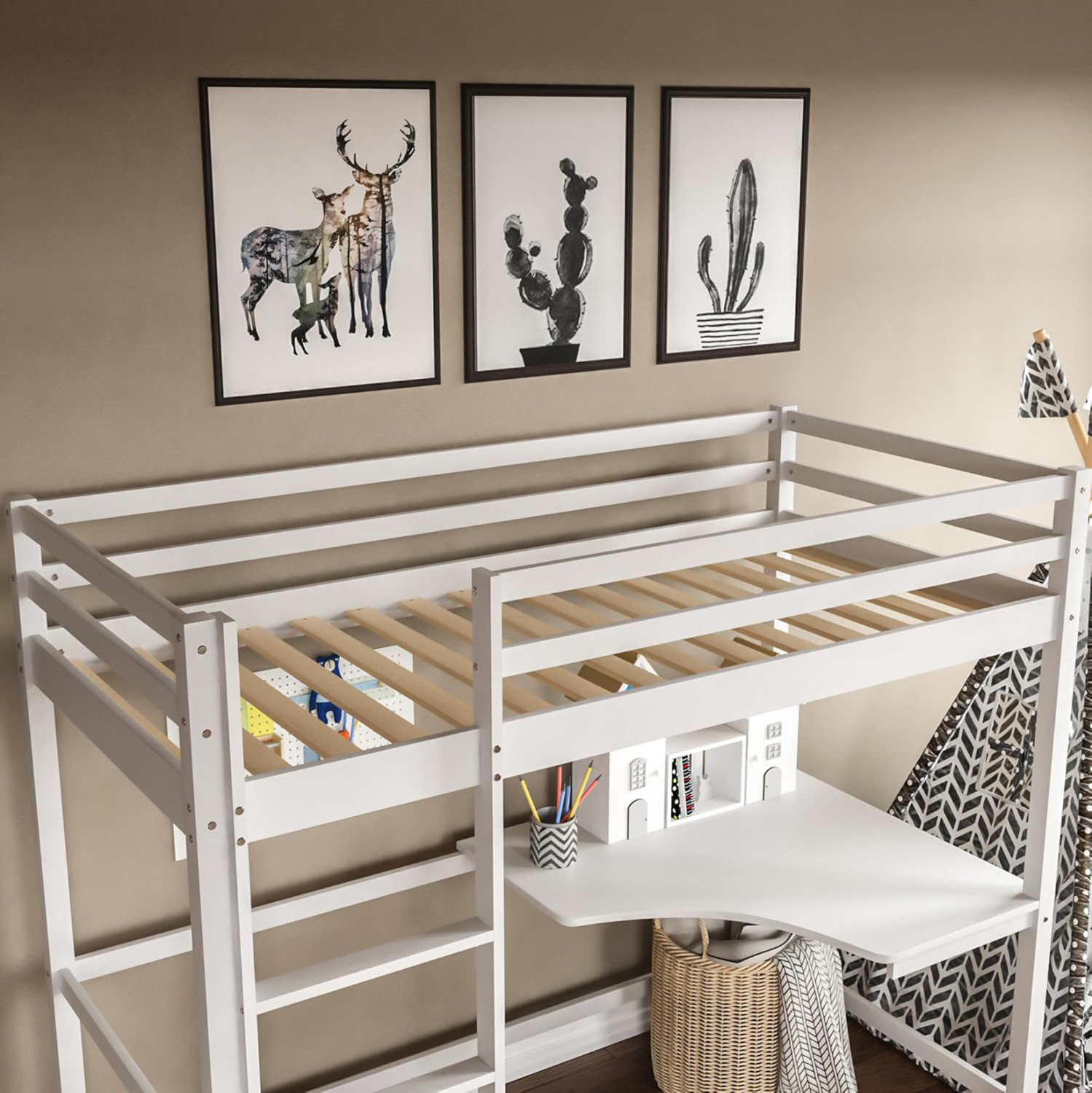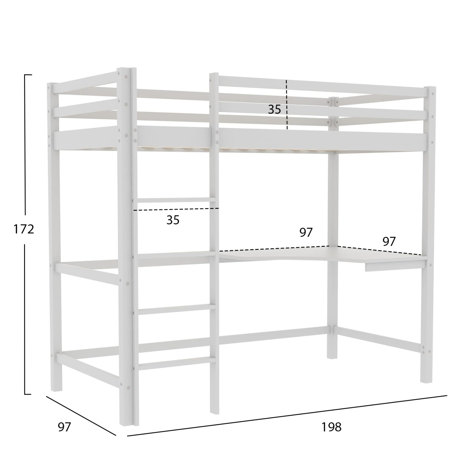 Σας παρουσιάζουμε το καινούργιο παιδικό κρεβάτι-κουκέτα AKRON σε διάσταση για μονό στρώμα 90×190 εκ, και αποτελεί μια άριστης ποιότητας, μοντέρνα και ασφαλή επιλογή για το παιδικό δωμάτιο. Είναι ξύλινο σε ΛΕΥΚΟ χρώμα βαμμένο με αβλαβές βερνίκι με βάση το νερό και μη τοξικό, ιδανικό για παιδιά. Το στρώμα τοποθετείται σε τάβλες κατασκευασμένες από ξυλεία κόντρα πλακέ. Η πρόσβαση στο κρεβάτι γίνεται με πρακτική σκάλα, ενώ στο κάτω μέρος υπάρχει γωνιακό γραφείο. Μια ιδανική πρόταση για δωμάτια με περιορισμένο χώρο.