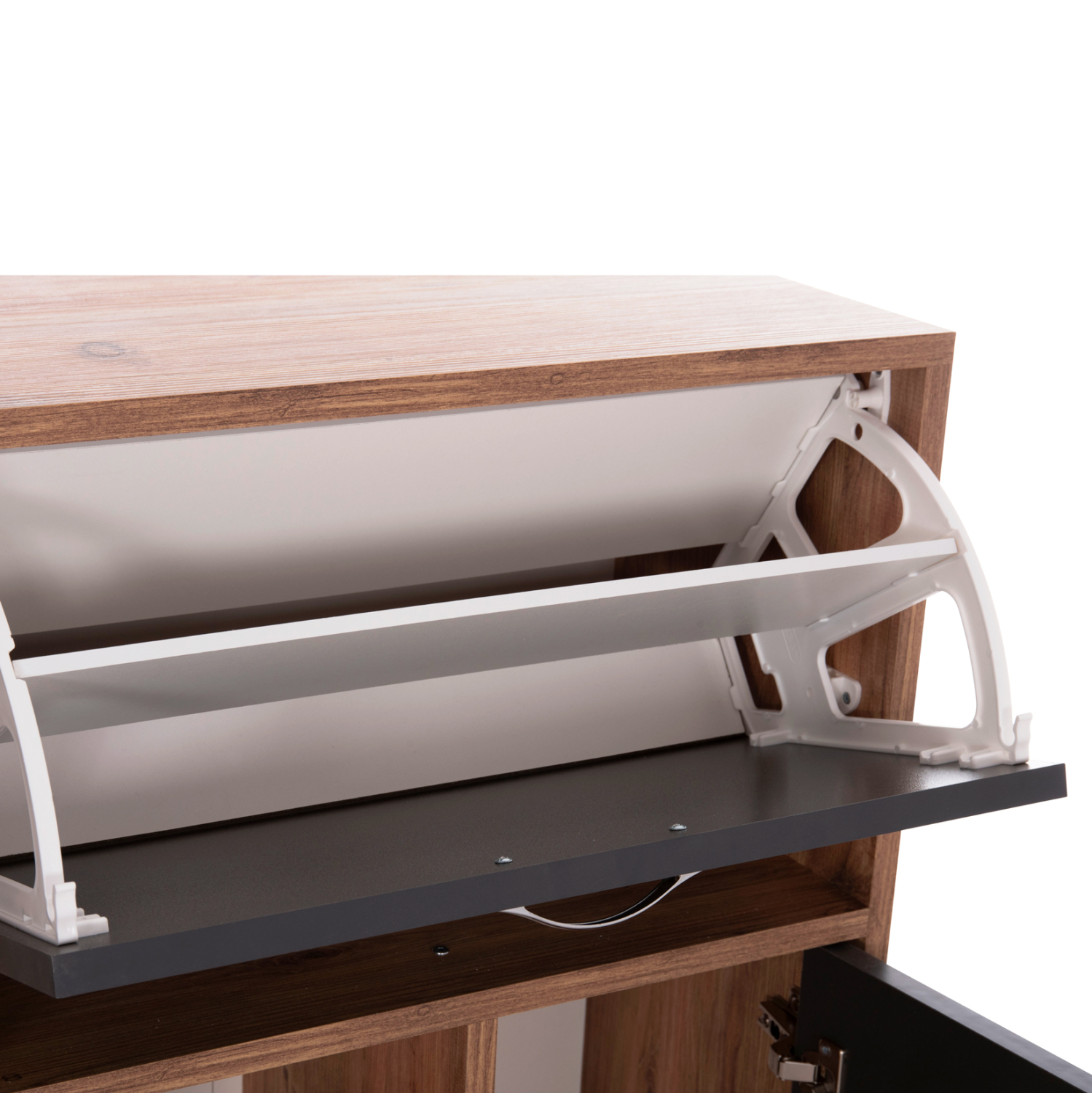 Η παπουτσοθήκη είναι κατασκευασμένη εξολοκλήρου από μελαμίνη 18mm. Η μελαμίνη είναι ένα συνθετικό υλικό πολύ ανθεκτικό και με μεγάλη σκληρότητα.
