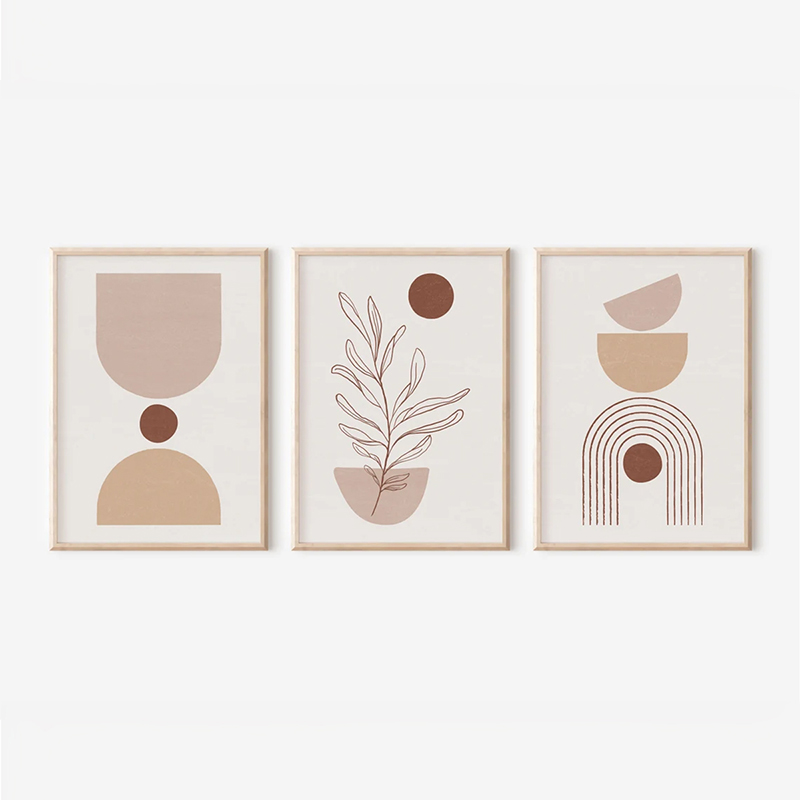 Αναβαθμίστε τον χώρο σας δημιουργώντας μια αίσθηση απόλυτης ηρεμίας και ισορροπίας: το Τρίπτυχο Stijo είναι η επιτομή του σύγχρονου Boho-minimalism. Αυτή η σύνθεση τριών τεμαχίων, ενισχυμένη από ψηφιακές εκτυπώσεις υψηλής ανάλυσης σε γήινες αποχρώσεις, προσφέρει έναν διακριτικό, αισθησιακό οπτικό ρυθμό και μία εκλεπτυσμένη αισθητική δήλωση.