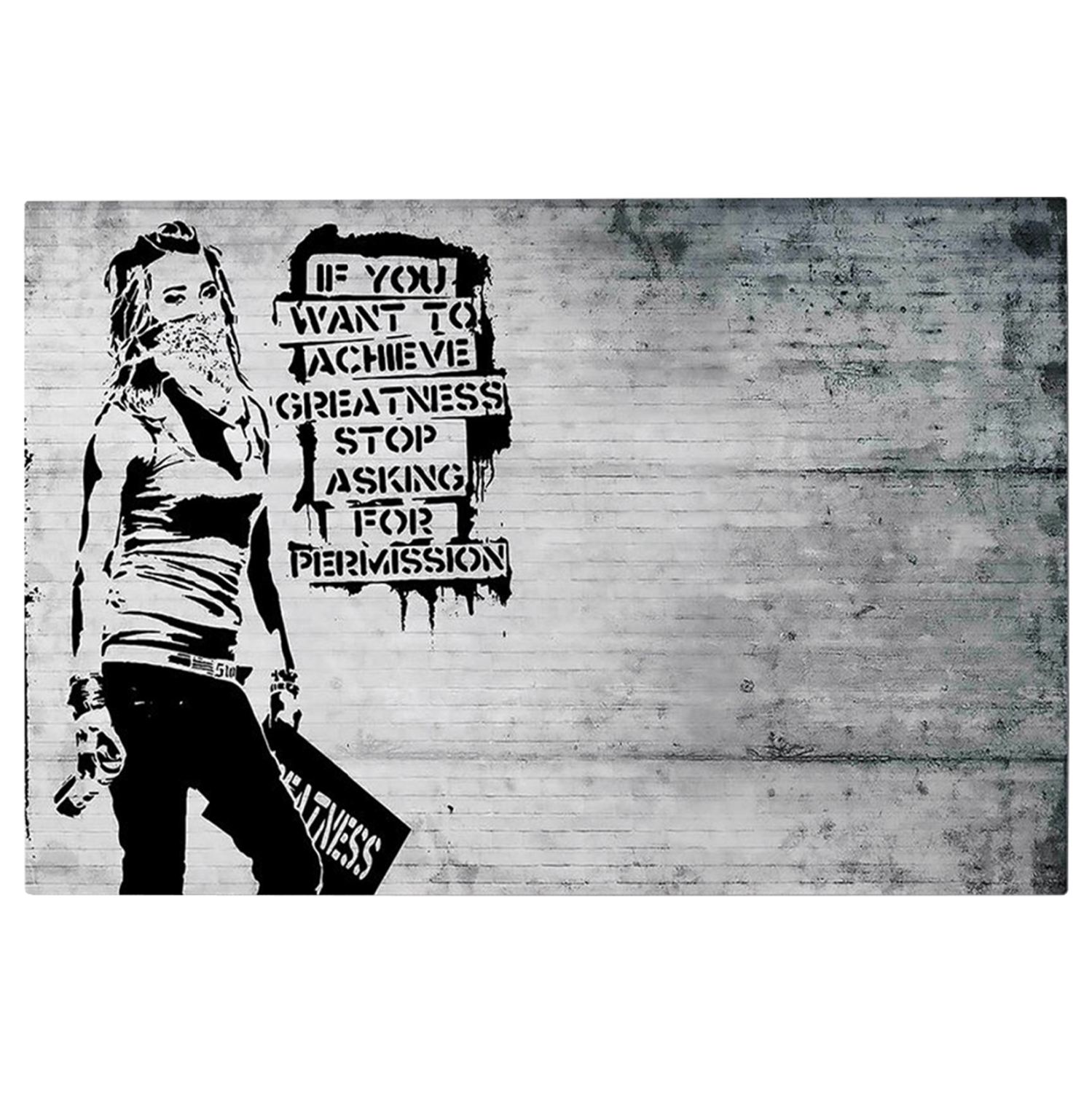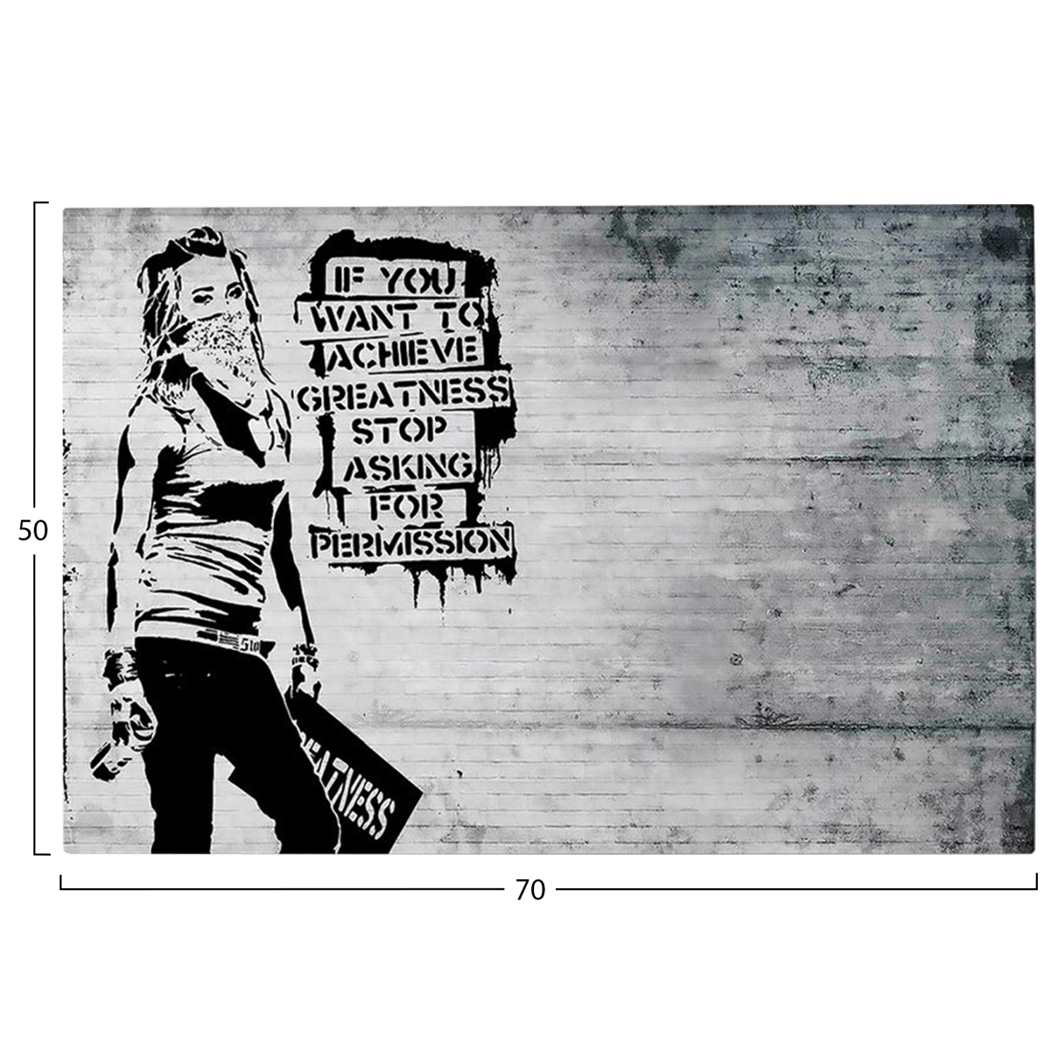 Ένας πίνακας τοίχου μεταμορφώνει τον τρόπο που αντιλαμβανόμαστε έναν χώρο. Διακοσμήστε, λοιπόν, τον χώρο σας με την καινούργια σειρά πινάκων τοίχου GOBI! Αυτός ο ασπρόμαυρος πίνακας που απεικονίζει μια τοιχογραφία με slogan, έχει υλοποιηθεί σε ψηφιακά εκτυπωμένο καμβά (50% βαμβάκι-50% πολυεστέρας) σε πλαίσιο από ξύλο.