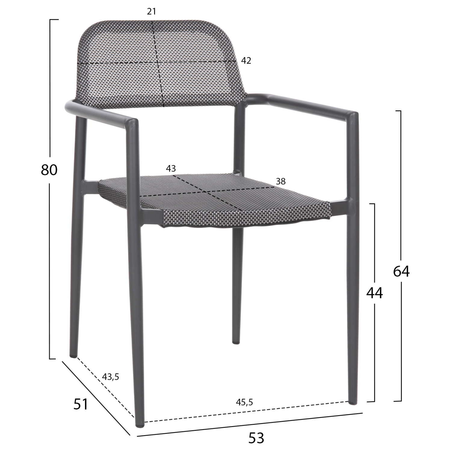 Το κάθισμα και η πλάτη είναι από textline (ή textilene) υψηλής ποιότητας 2×1. Αυτό είναι ένα παχύ, ισχυρό και ανθεκτικό πολυεστερικό ύφασμα. Σημαίνει ότι είναι κατασκευασμένο από πολυεστερικά νήματα με PVC.