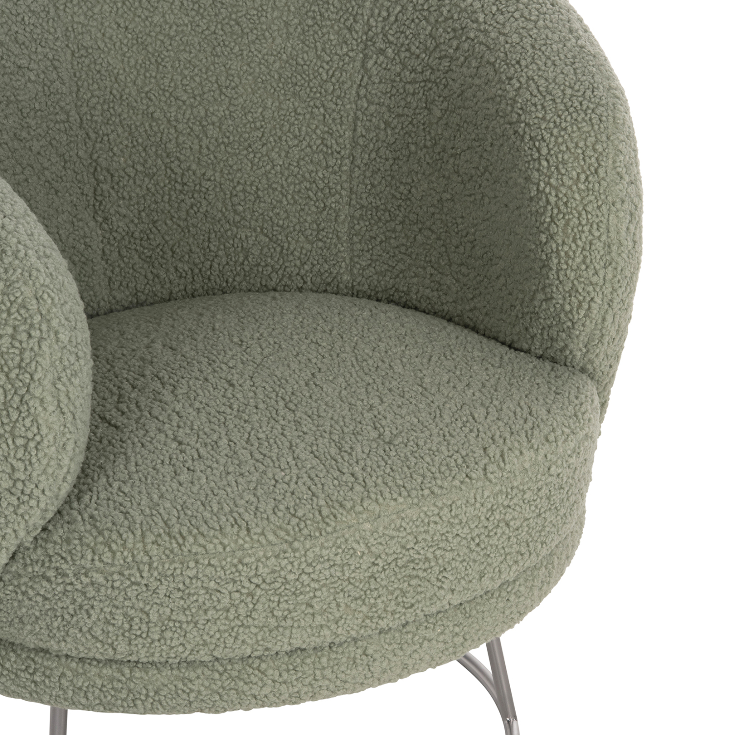 Η επένδυση της πολυθρόνας έχει γίνει εξολοκλήρου με εξαιρετικής ποιότητας μπουκλέ ύφασμα. Μπουκλέ λέγεται οποιοδήποτε ύφασμα που έχει κόμπο-μπούκλα στην ύφανσή του. Κατασκευάζεται από σχεδόν όλες τις πρώτες ύλες (αν και συνήθως είναι συνθετικό) με ειδικές κλωστές με κόμπους ή πολύ στριμμένα νήματα, έτσι ώστε να έχει σγουρή επιφάνεια. Δεν τσαλακώνει και μπορεί να είναι μονόχρωμο, μελανζέ ,καρώ ή τουιντ.