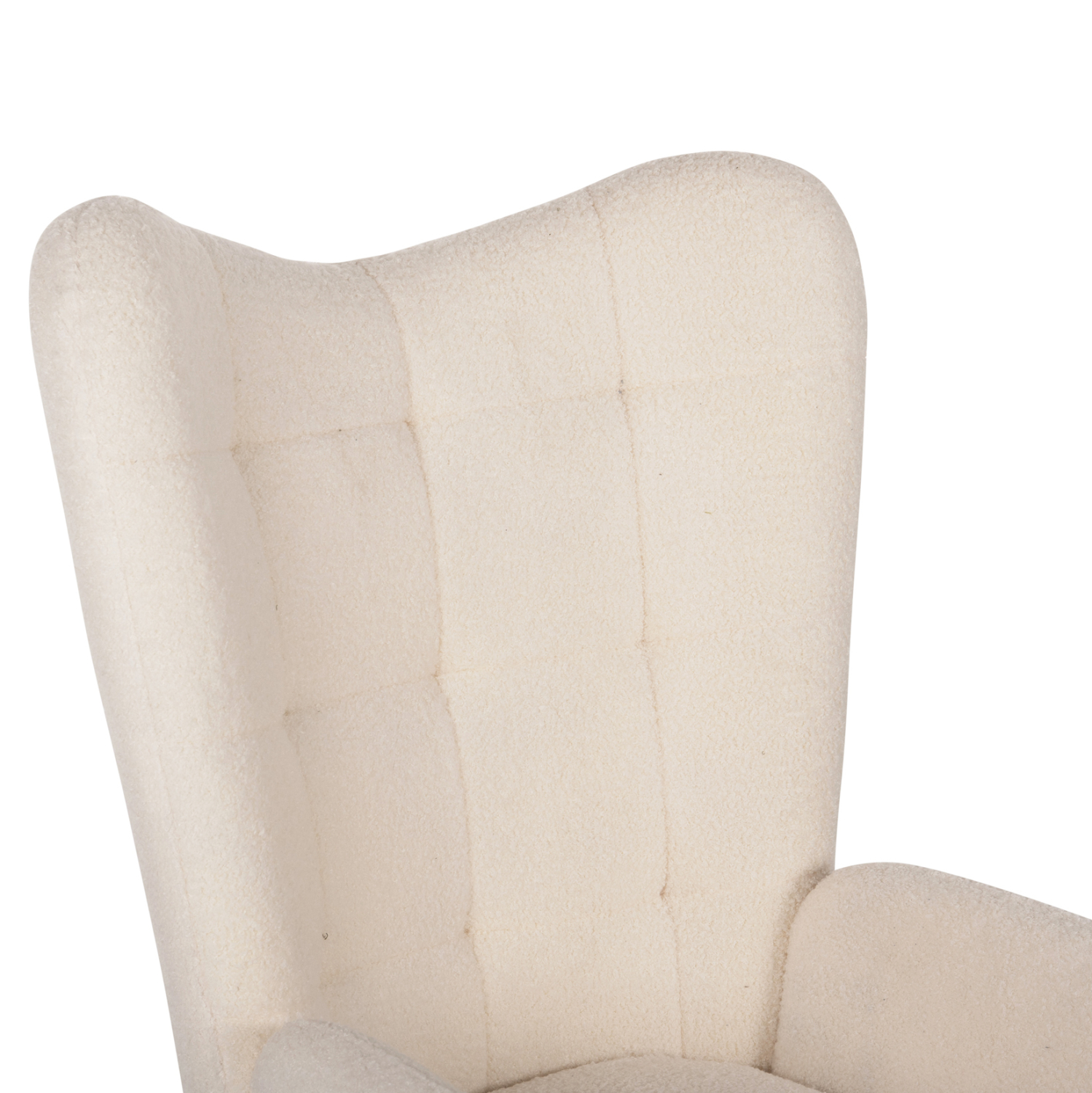 Ολόκληρη η επένδυση της μπερζέρας έχει γίνει με εξαιρετικής ποιότητας μπουκλέ ύφασμα, χαρίζοντας ελκυστική όψη και μια εκλεπτυσμένη γοητεία στην διακόσμηση του σαλονιού σας. Αυτό το ύφασμα είναι πολυεστερικό με προδιαγραφές 300gr/m2.