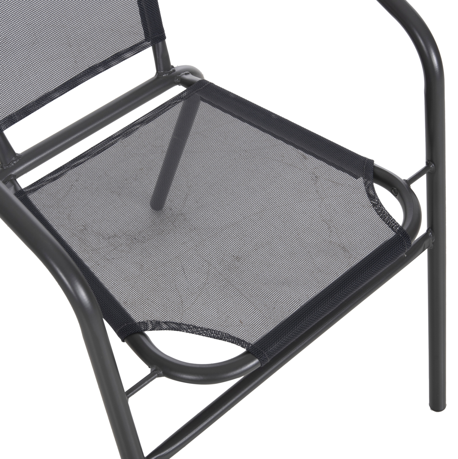 Το κάθισμα και η πλάτη είναι από textline (ή textilene) 1×1. Αυτό είναι ένα παχύ, ισχυρό και ανθεκτικό πολυεστερικό ύφασμα. Σημαίνει ότι είναι κατασκευασμένο από πολυεστερικά νήματα με PVC.