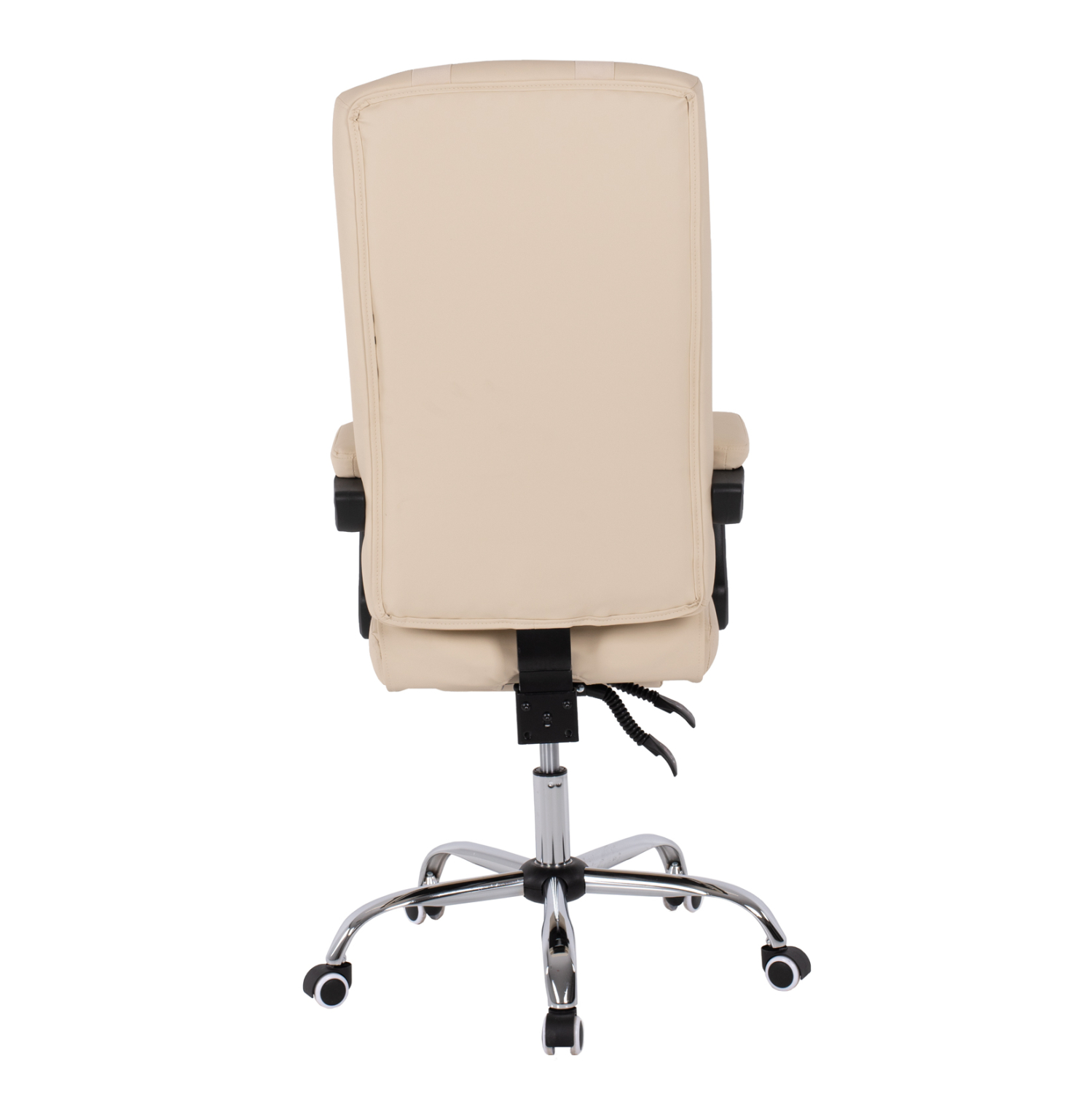 ΗΜ1057.12–Διευθυντική καρέκλα γραφείου σε ΜΠΕΖ χρώμα. Μια «πλούσια» και επιβλητική καρέκλα γραφείου με αναπαυτικά μπράτσα με εργονομική κλίση επενδυμένα με μαξιλαράκια. Η πλάτη είναι πολύ ψηλή ενώ έχει πλούσια στρώση από αφρώδη υλικά και έξτρα μαξιλαράκι στο επάνω μέρος της πλάτης για μεγαλύτερη άνεση κατά την χρήση. Υποστηρίζει ολόκληρο τον κορμό σας, ενώ είναι επενδυμένη με υψηλής ποιότητας PU δέρμα με καπιτονέ τεχνοτροπία, όπως επίσης και το φαρδύ και αναπαυτικό κάθισμα με την εξτρά αναπαυτική επιφάνεια. Η βάση είναι χρωμιωμένη σε σχήμα «αστέρι» με κυρτά πόδια και ασπρόμαυρα ροδάκια. Το χαρακτηριστικό, όμως, που κάνει αυτή την καρέκλα να ξεχωρίζει είναι ότι διαθέτει πτυσσόμενο υποπόδιο, το οποίο σε συνδυασμό με το γεγονός ότι η πλάτη «πέφτει» με μεγάλη κλίση, σας επιτρέπει να ξαπλώνετε και να ξεκουράζεστε όταν το επιθυμείτε!