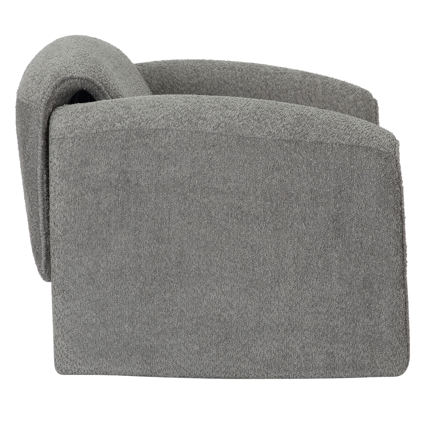 Ο σκελετός της πολυθρόνας είναι μεταλλικός με ηλεκτροστατική βαφή, ενώ ολόκληρη η επένδυση έχει γίνει με μπουκλέ ύφασμα εξαιρετικής ποιότητας και υφής. Μπουκλέ λέγεται οποιοδήποτε ύφασμα που έχει κόμπο-μπούκλα στην ύφανσή του. Κατασκευάζεται από σχεδόν όλες τις πρώτες ύλες (αν και συνήθως είναι συνθετικό) με ειδικές κλωστές με κόμπους ή πολύ στριμμένα νήματα, έτσι ώστε να έχει σγουρή επιφάνεια. Δεν τσαλακώνει και μπορεί να είναι μονόχρωμο, μελανζέ ,καρώ ή τουιντ.