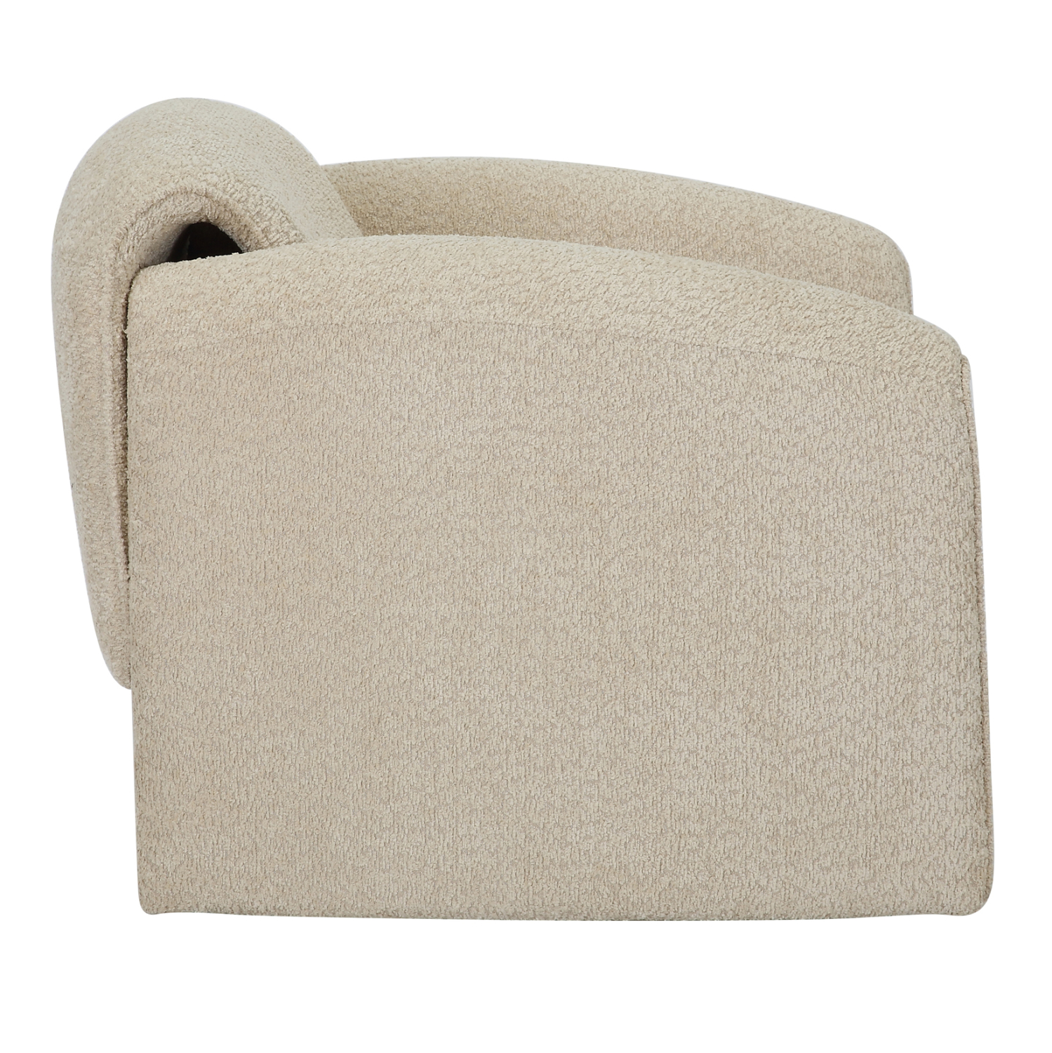Ο σκελετός της πολυθρόνας είναι μεταλλικός με ηλεκτροστατική βαφή, ενώ ολόκληρη η επένδυση έχει γίνει με μπουκλέ ύφασμα εξαιρετικής ποιότητας και υφής. Μπουκλέ λέγεται οποιοδήποτε ύφασμα που έχει κόμπο-μπούκλα στην ύφανσή του. Κατασκευάζεται από σχεδόν όλες τις πρώτες ύλες (αν και συνήθως είναι συνθετικό) με ειδικές κλωστές με κόμπους ή πολύ στριμμένα νήματα, έτσι ώστε να έχει σγουρή επιφάνεια. Δεν τσαλακώνει και μπορεί να είναι μονόχρωμο, μελανζέ ,καρώ ή τουιντ.