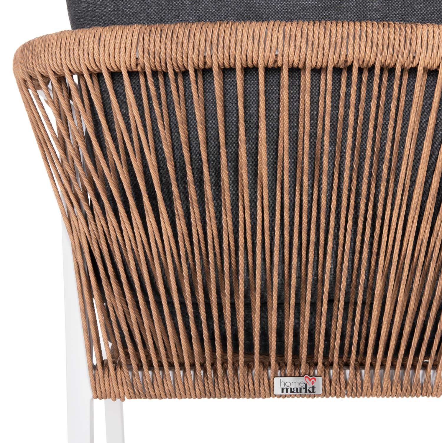 Η πολυθρόνα αλουμινίου MAERLY σε ΛΕΥΚΟ χρώμα είναι τόσο για επαγγελματική χρήση όσο και για το σπίτι. Ουσιαστικά δεν έχει ξεχωριστά μπράτσα αλλά η πλάτη είναι ενιαία με τα μπράτσα αγκαλιάζοντας το σώμα. Πρόκειται για μια πανέμορφη πολυθρόνα με χαμηλή πλάτη και κάθισμα από συνθετικό Rattan (twisted) άριστης ποιότητας σε ΑΝΟΙΧΤΟ ΚΑΦΕ χρώμα. Το ιδιαίτερο χαρακτηριστικό αυτής της πολυθρόνας είναι ότι διαθέτει αναπαυτικά μαξιλάρια τόσο στο κάθισμα όσο και στην πλάτη, σε ΑΝΘΡΑΚΙ χρώμα.