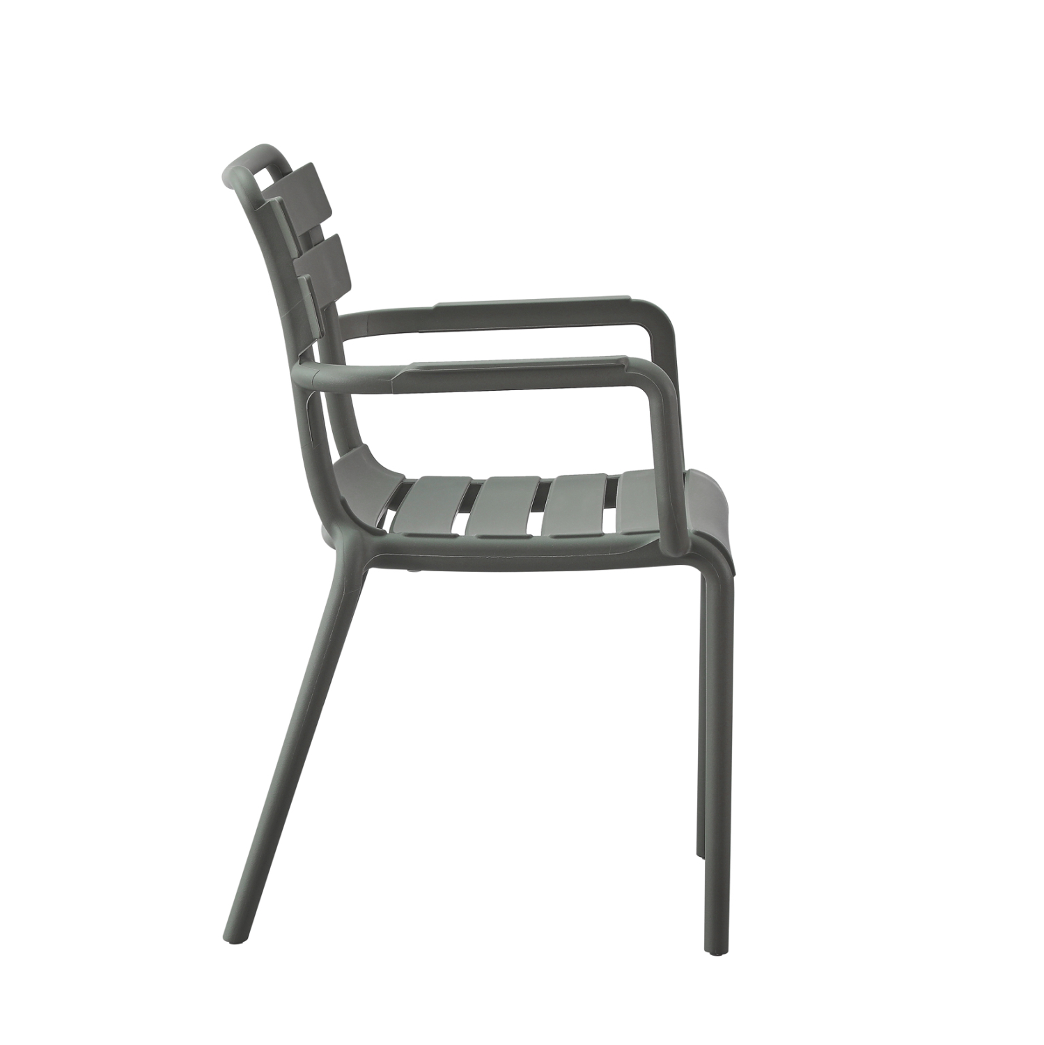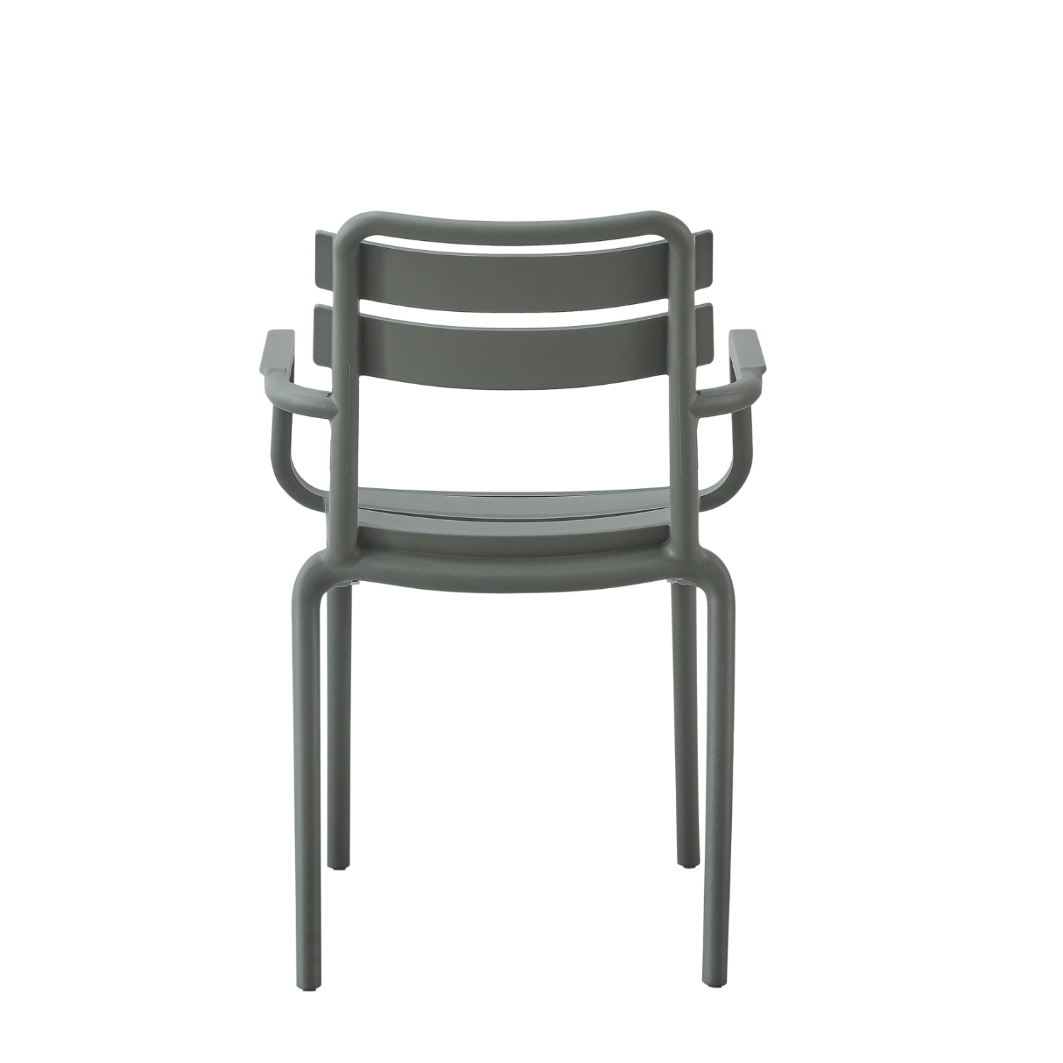 Η πολυθρόνα PHILLY είναι μια πολυθρόνα εξωτερικού χώρου σε μοντέρνα υλοποίηση. Είναι ποιοτική και κομψή στην όψη, ενώ το καμπυλωτό κάθισμα στο μπροστά μέρος όπως και τα σχετικά ψηλά της μπράτσα την καθιστούν αναπαυτικότατη. Όλη η πολυθρόνα είναι από πολυπροπυλένιο σε OLIVE GREEN χρώμα. Είναι στοιβαζόμενη, ελαφριά και άνετη, ιδανική επιλογή και για επαγγελματική χρήση, όπως σε catering κτλ.