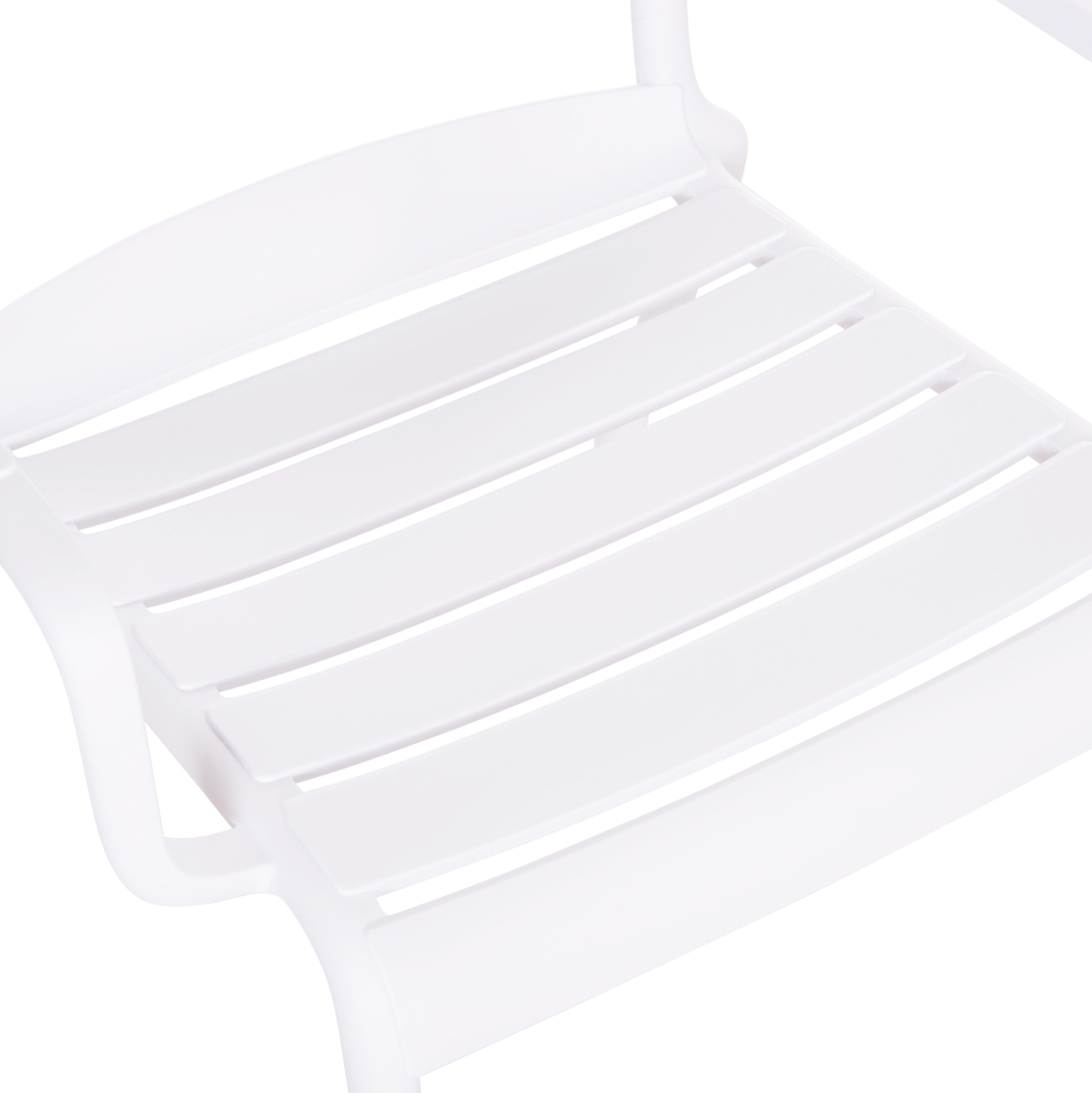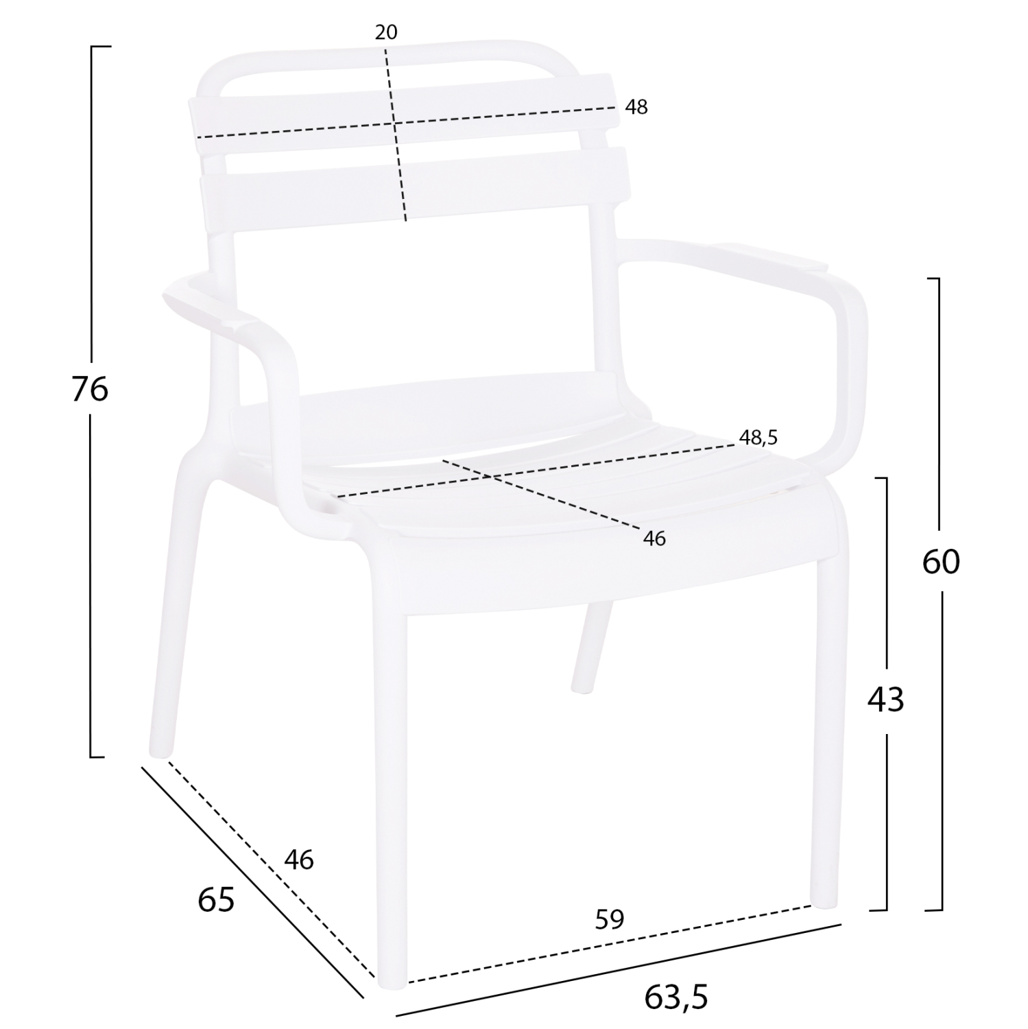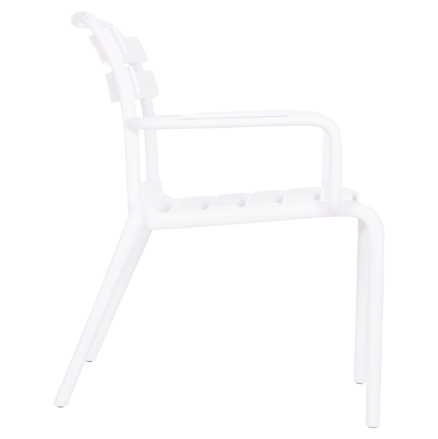 Η πολυθρόνα σαλονιού KORVER είναι για τον εξωτερικό χώρο και θα καλύψει κάθε σας ανάγκη στην αυλή ή το μπαλκόνι σας. Είναι ποιοτική και κομψή στην όψη, ενώ το καμπυλωτό κάθισμα στο μπροστά μέρος όπως και τα σχετικά ψηλά της μπράτσα την καθιστούν αναπαυτικότατη. Όλη η πολυθρόνα είναι από πολυπροπυλένιο σε ΛΕΥΚΟ χρώμα. Είναι ΣΤΟΙΒΑΖΟΜΕΝΗ, ελαφριά και άνετη, ιδανική επιλογή και για επαγγελματική χρήση, όπως σε catering κτλ.