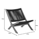Πολυθρόνα Seeal pakoworld πτυσσόμενη teak ξύλο και pe σχοινί σε μαύρη απόχρωση 61x76x72εκ